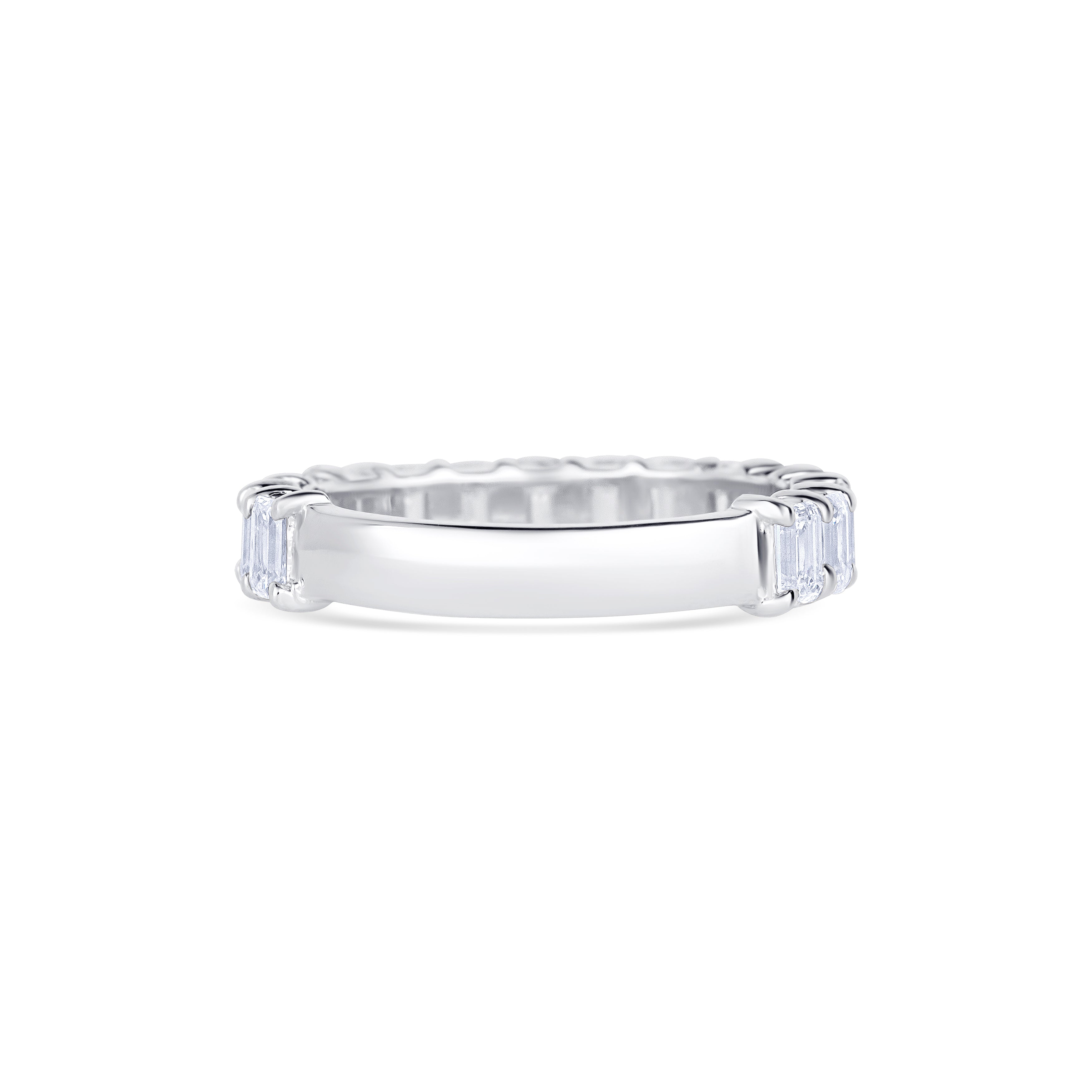 14K White Gold Emerald Cut Diamond Three Quarter Wedding Band