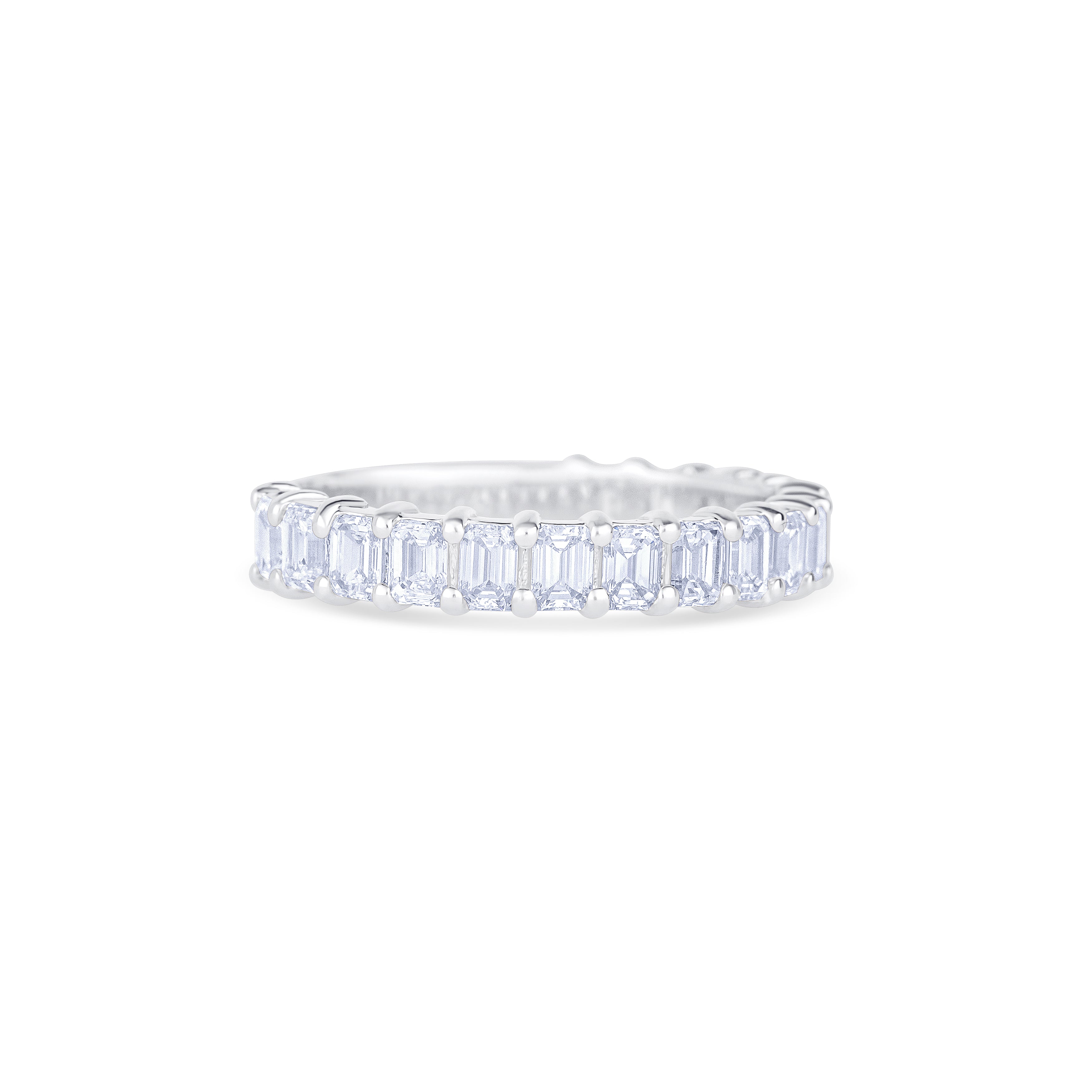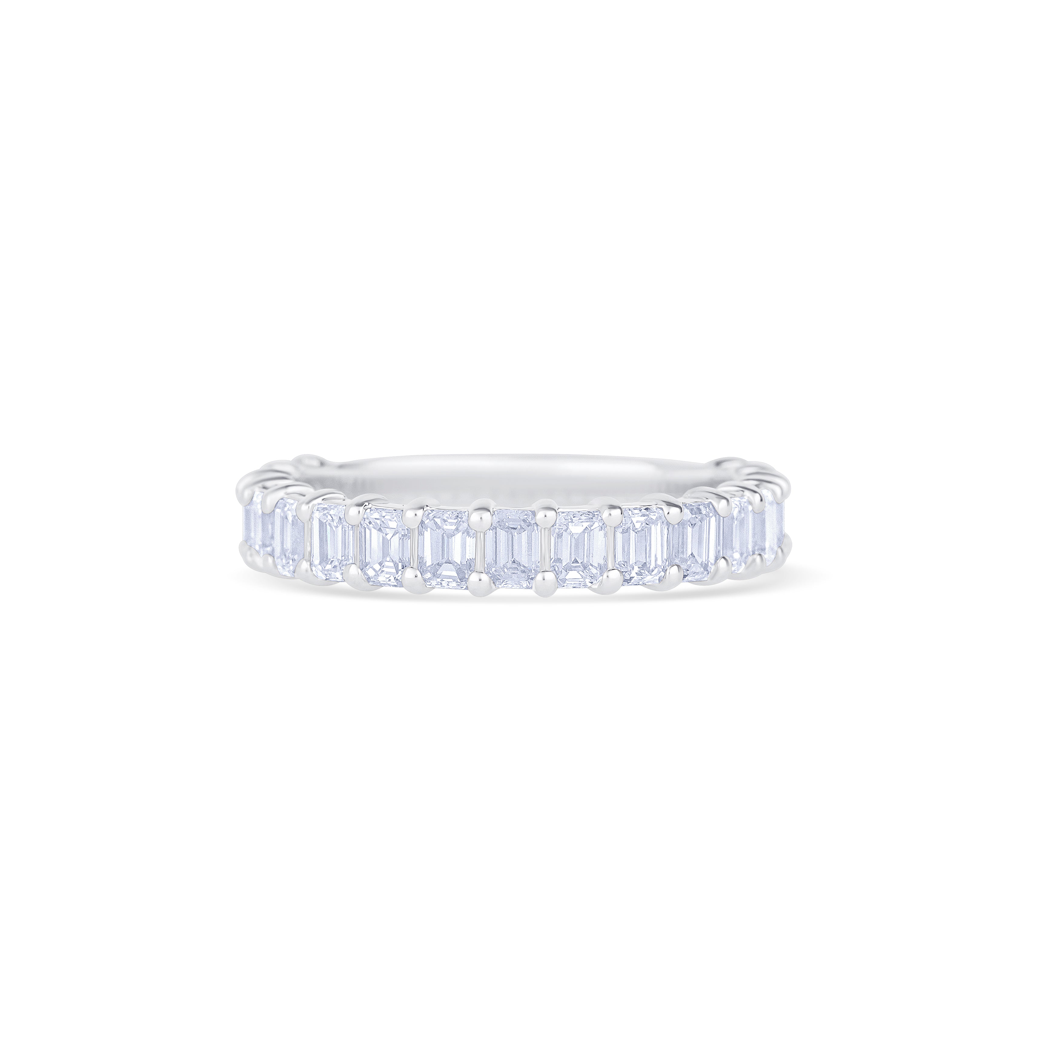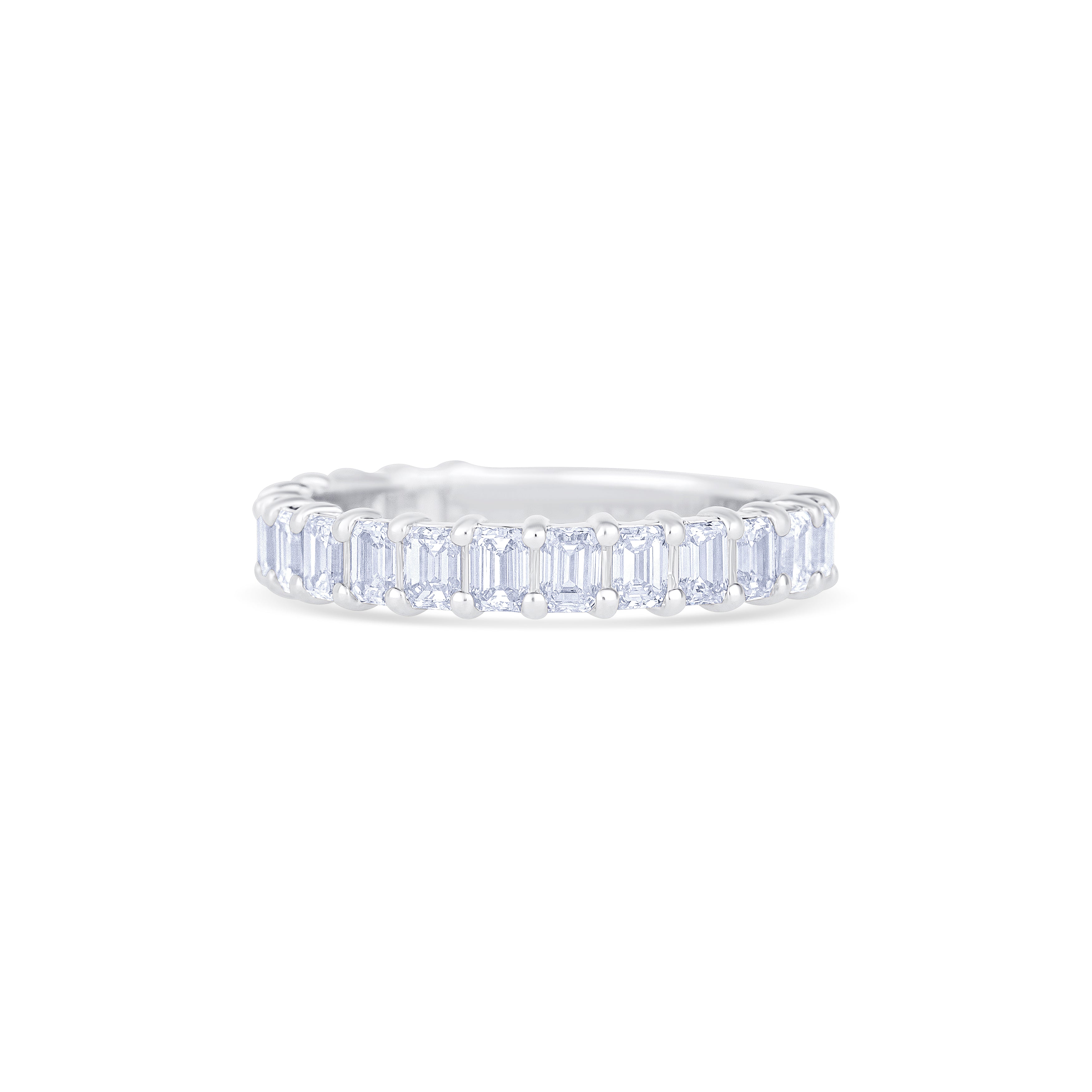 14K White Gold Emerald Cut Diamond Three Quarter Wedding Band