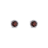 14K White Gold Garnet Round Halo Stud Earrings