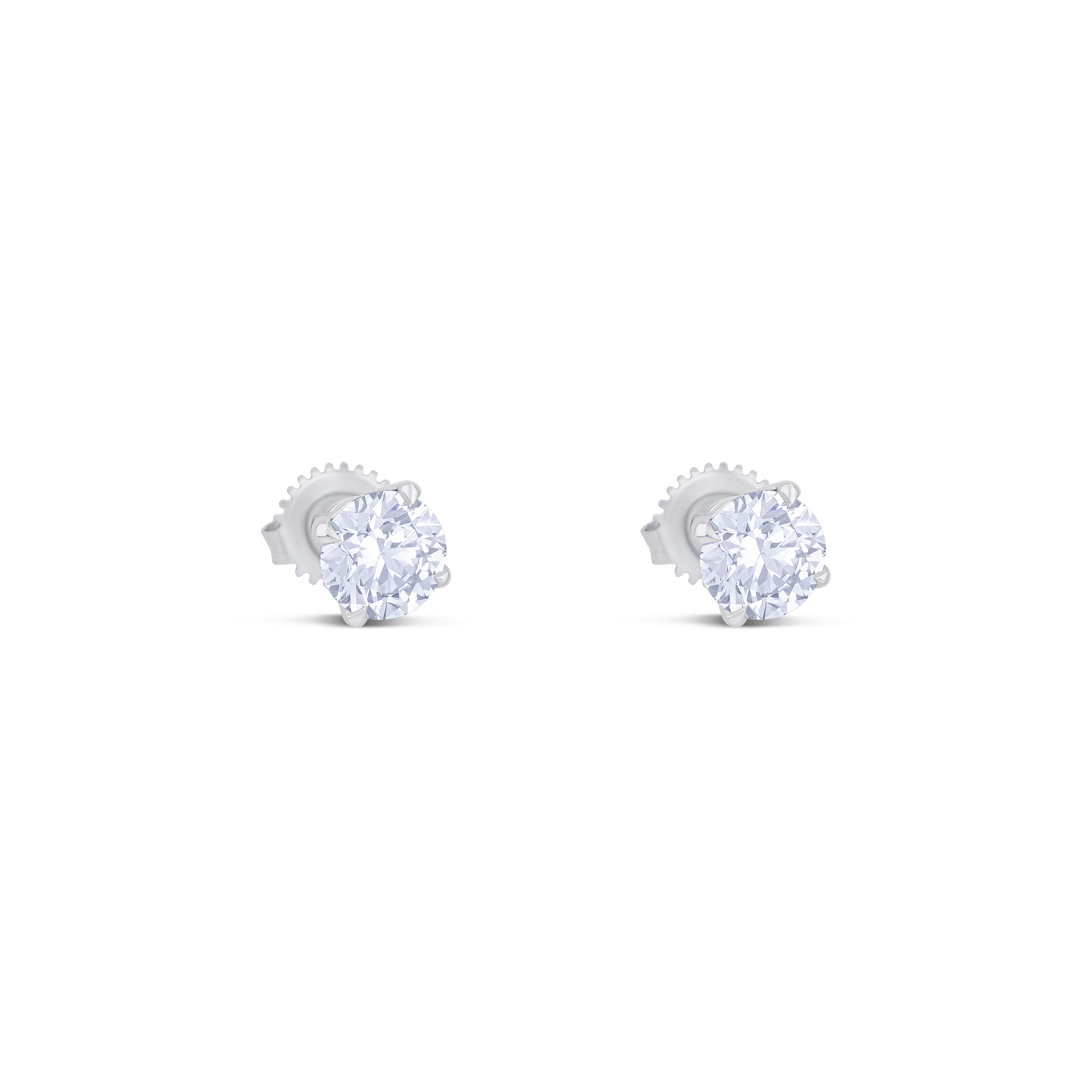 14K White Gold Prong Set Round Cut Diamond Stud Earrings