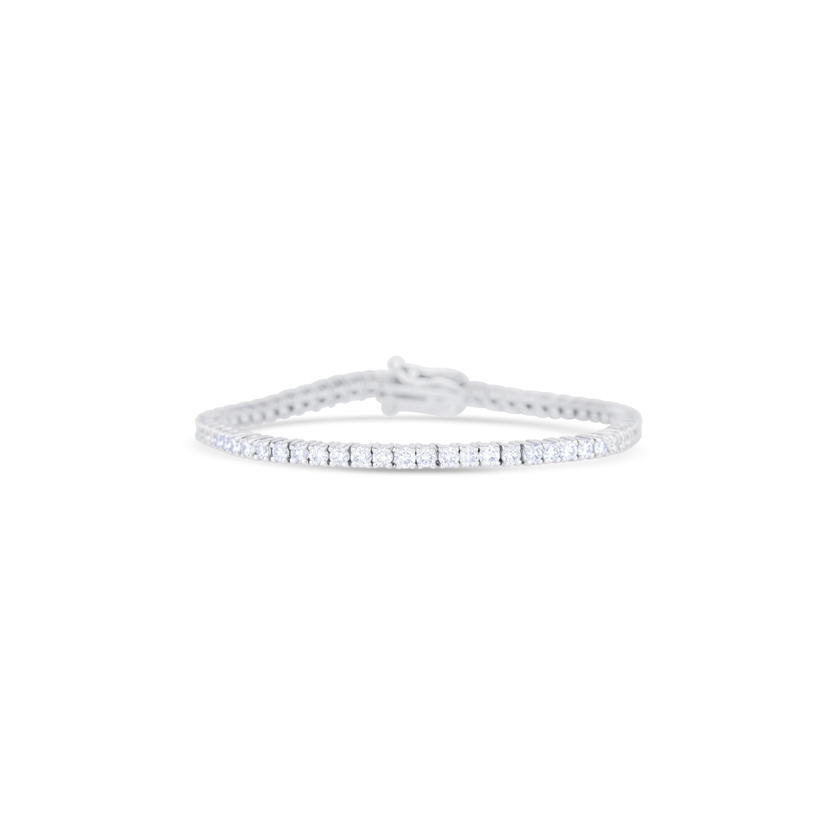 14K White Gold Prong Set Round Diamond Cut Tennis Bracelet