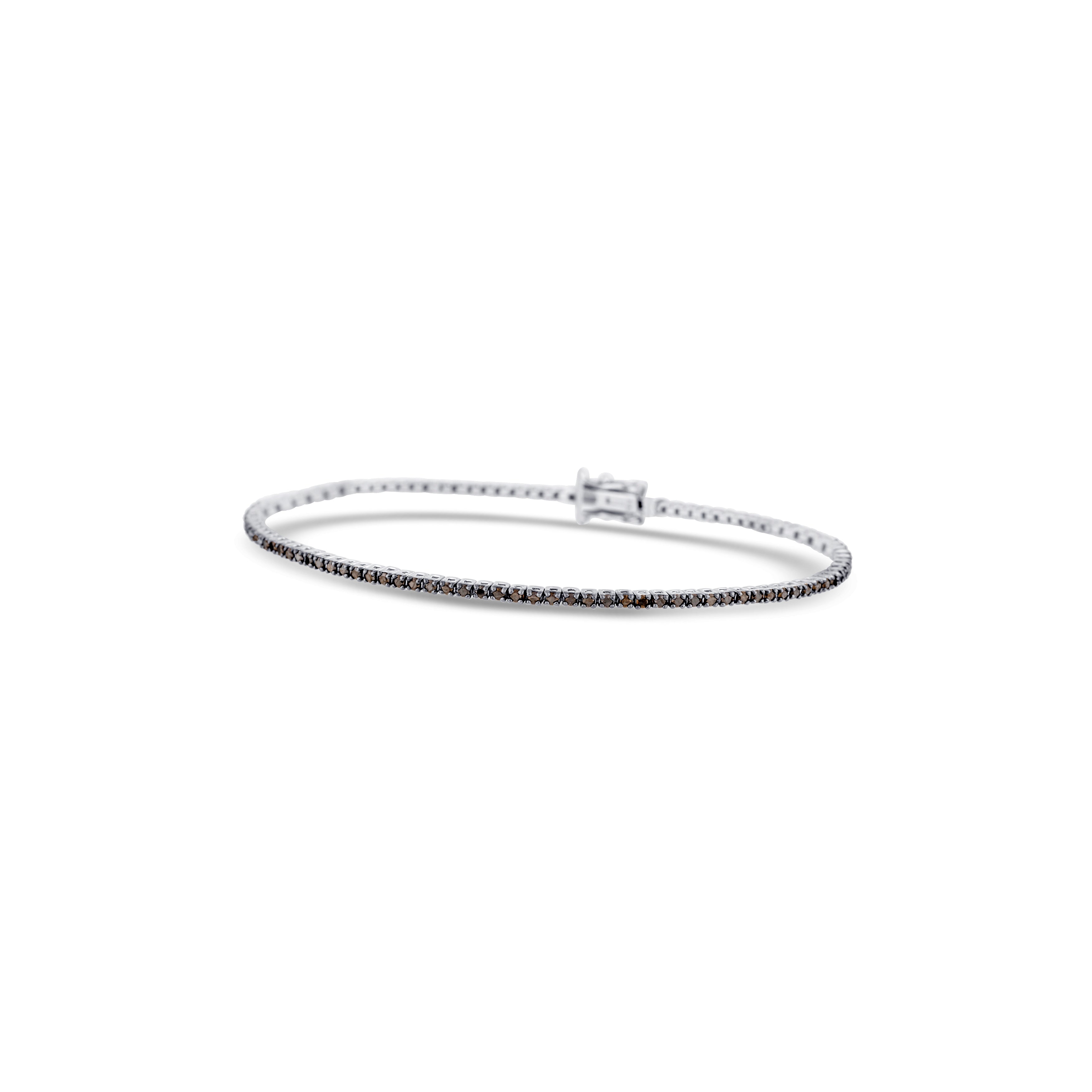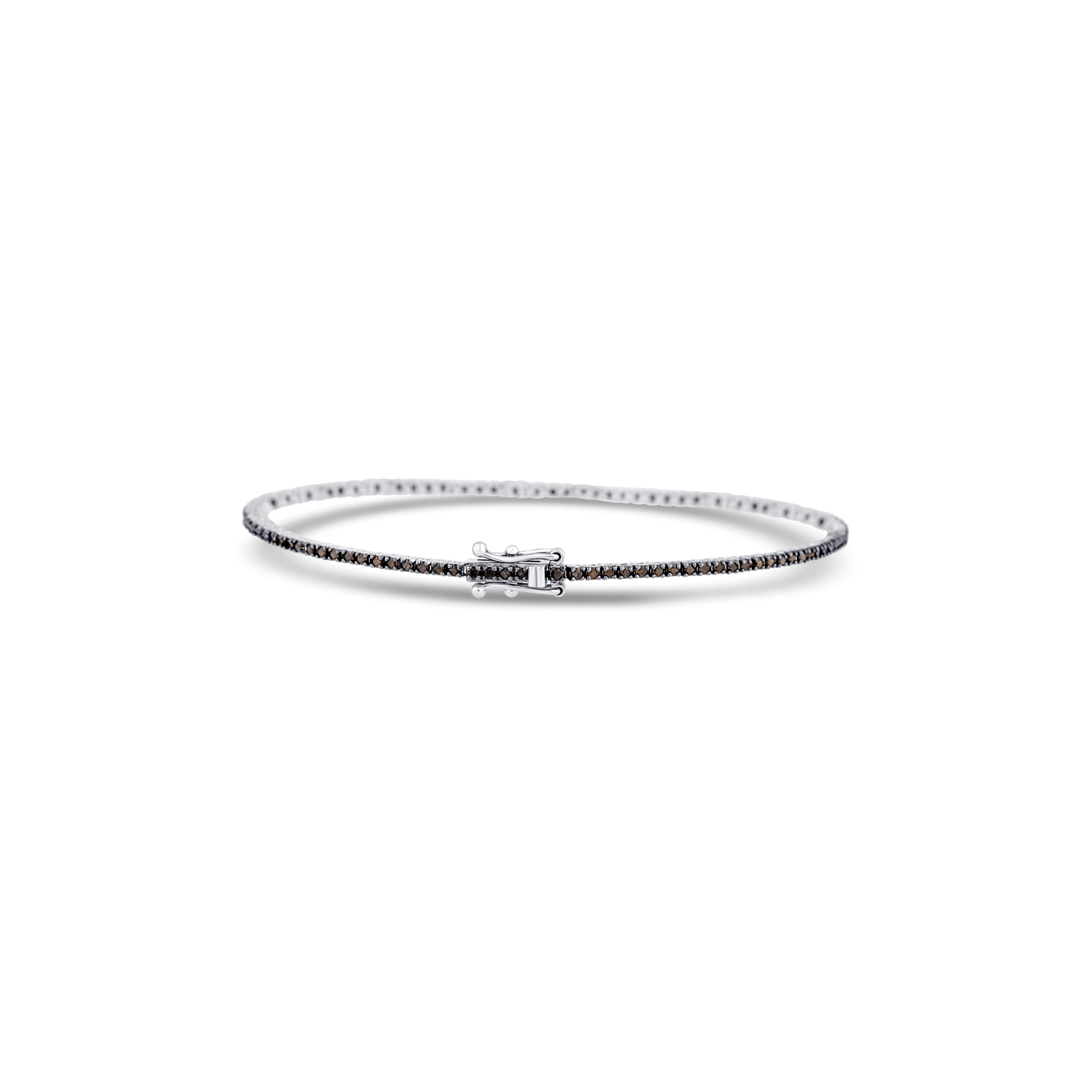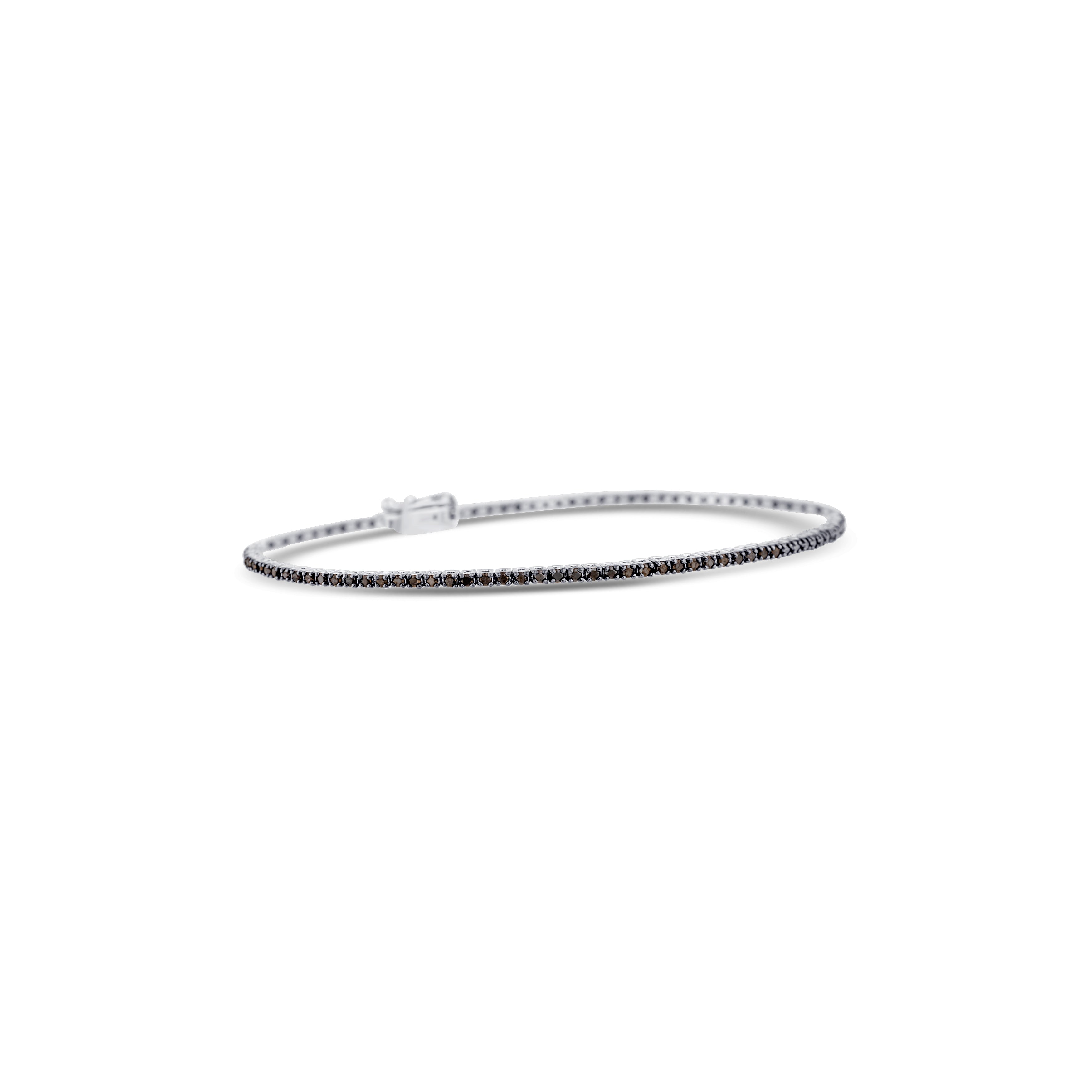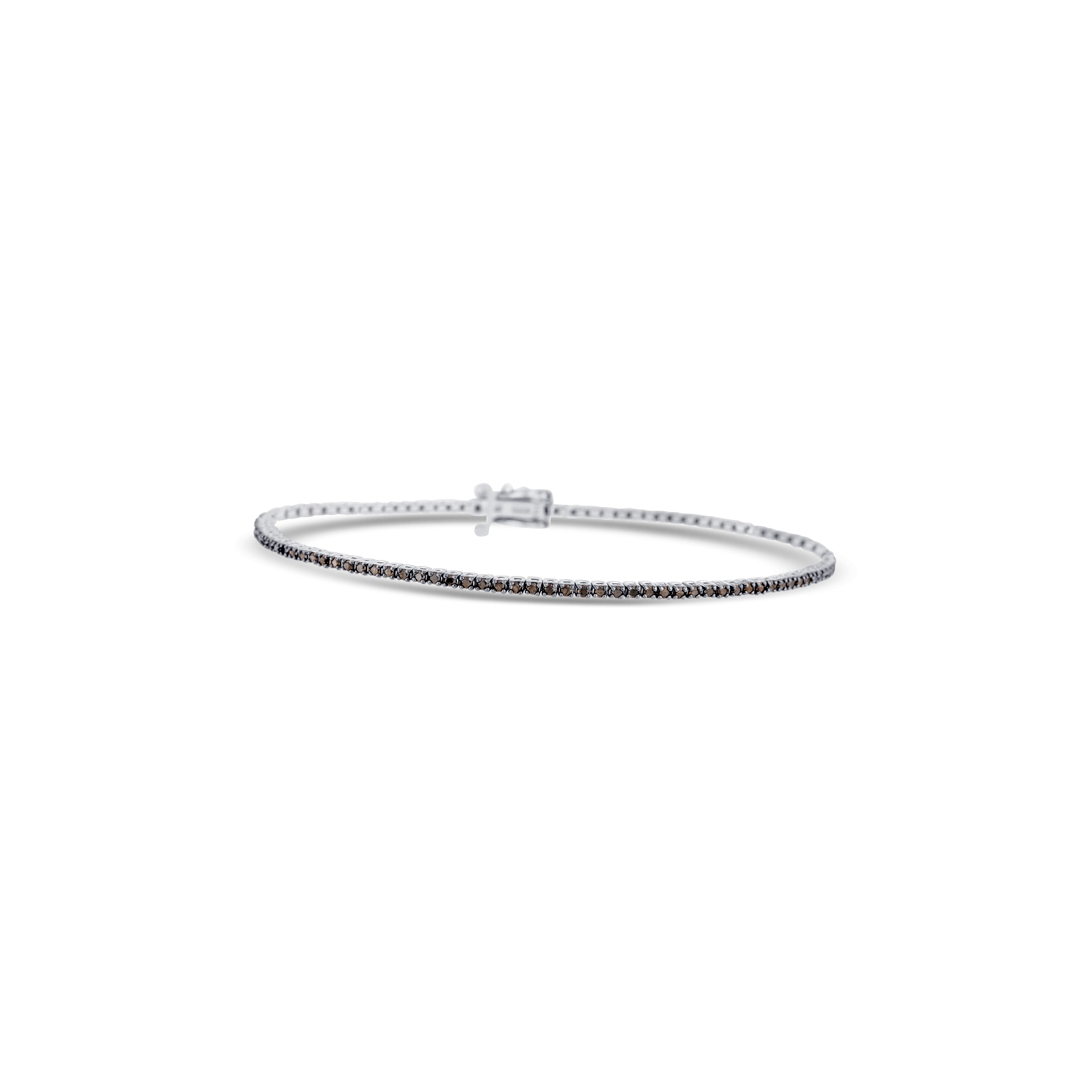 14K White Gold Round Cut Black Diamond Straight Line Bracelet