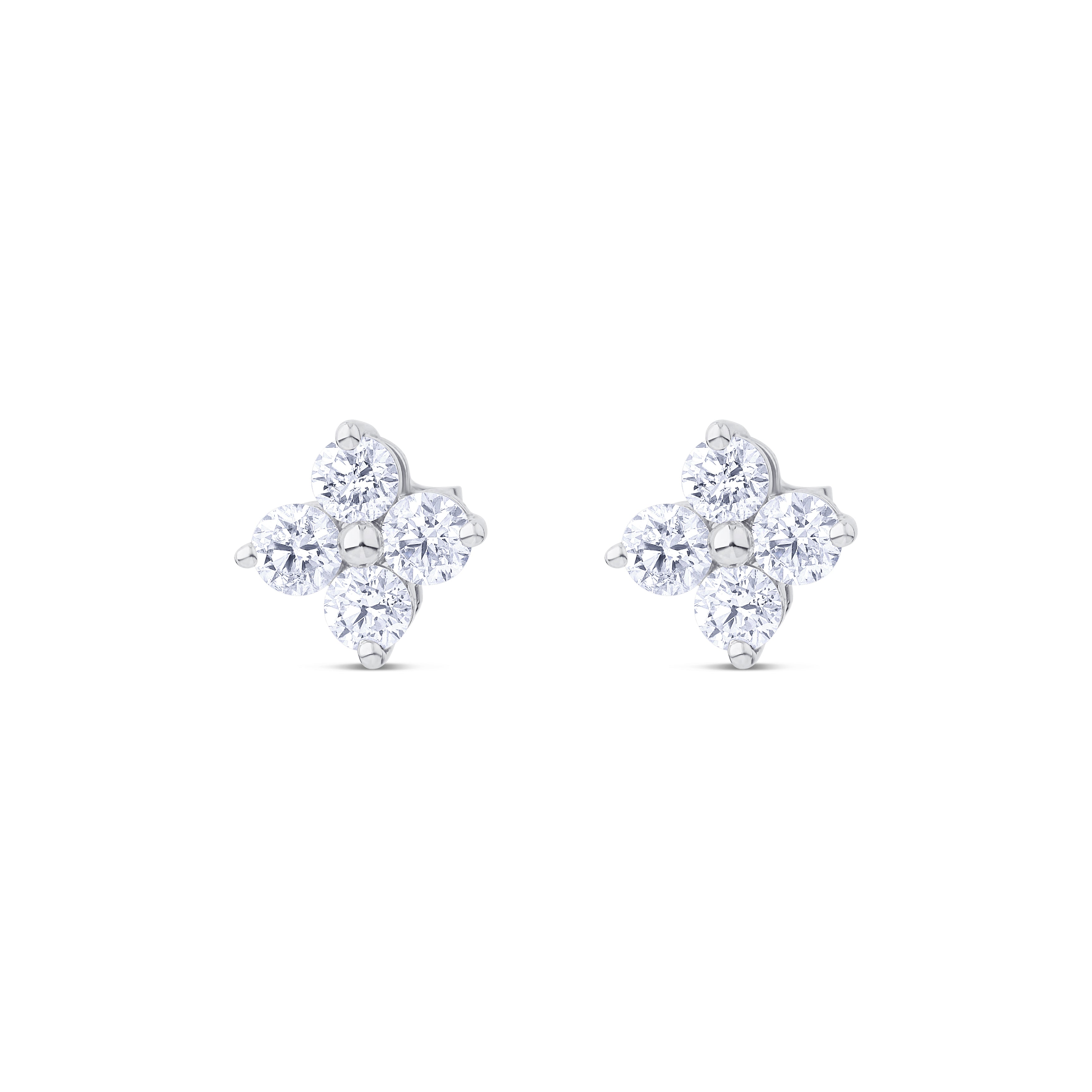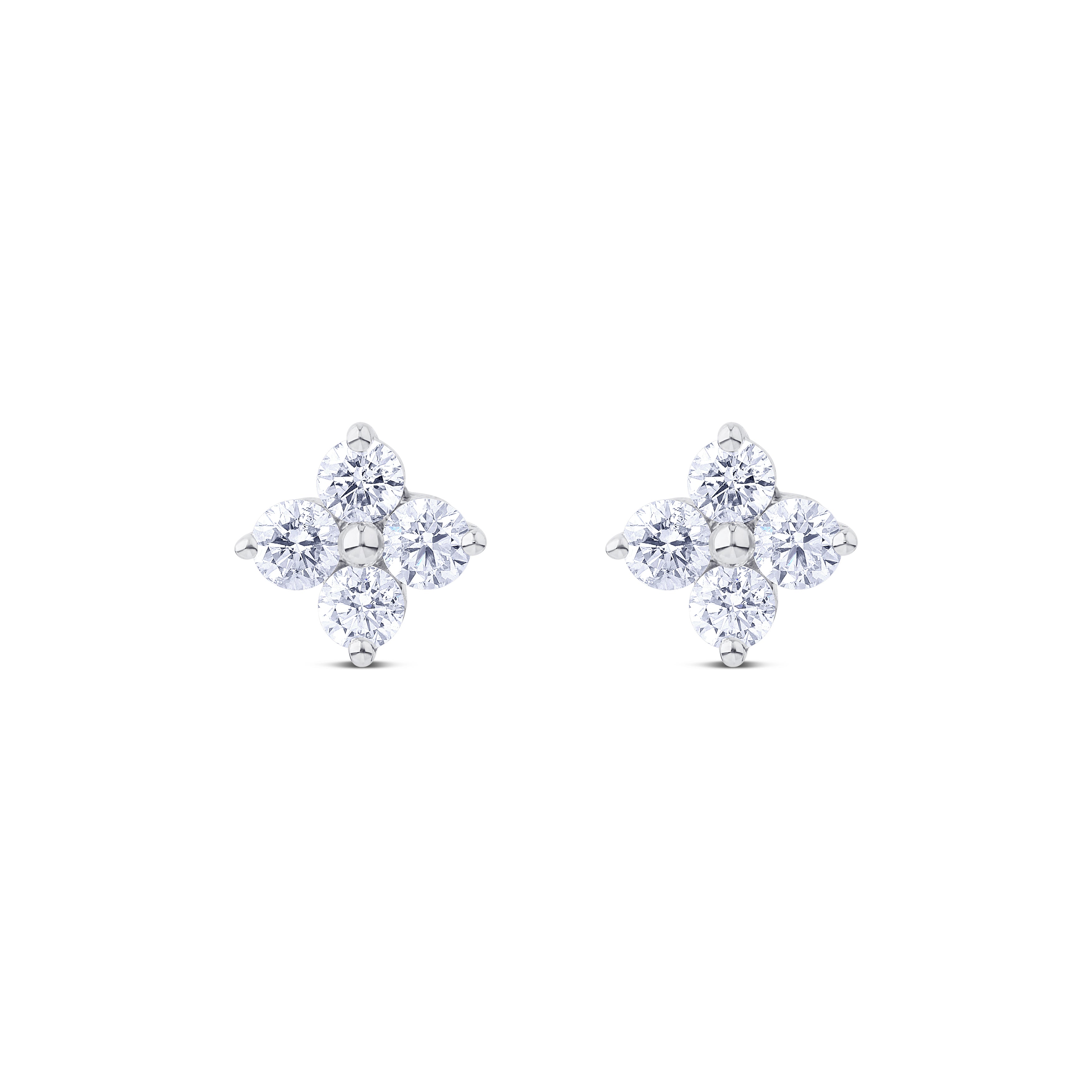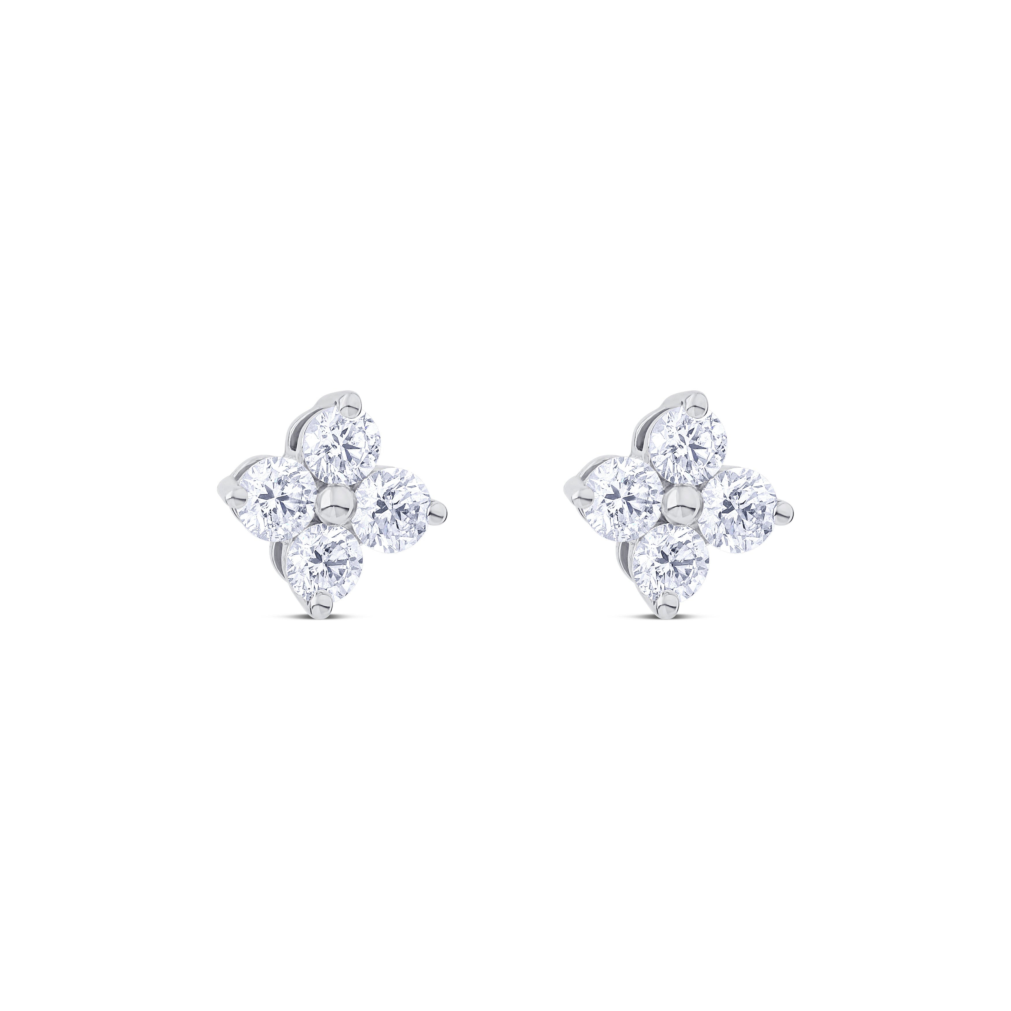 14K White Gold Round Cut Diamond Flower Cluster Stud Earrings