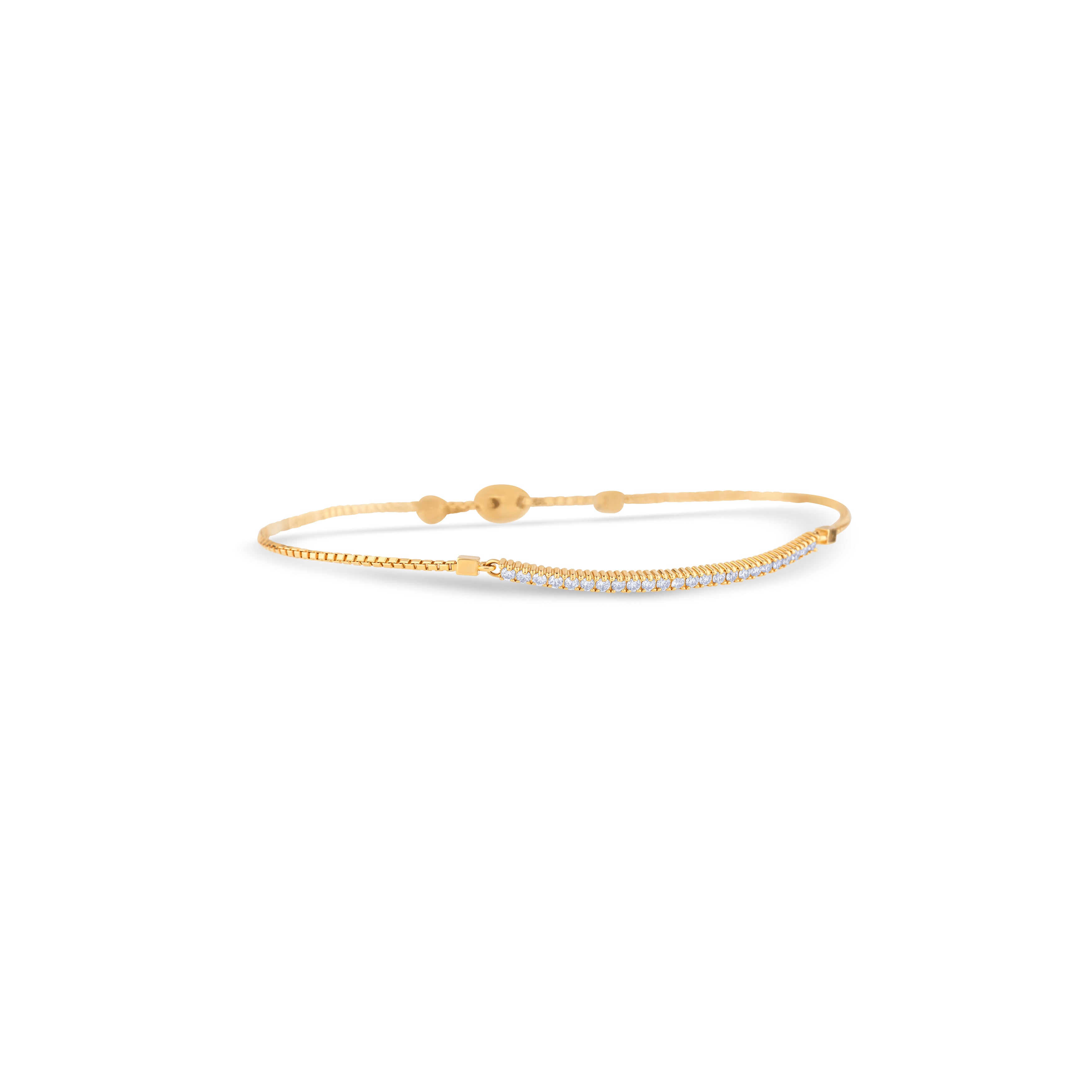 14K White Gold Round Cut Diamond Line Design Adjustable Bracelet