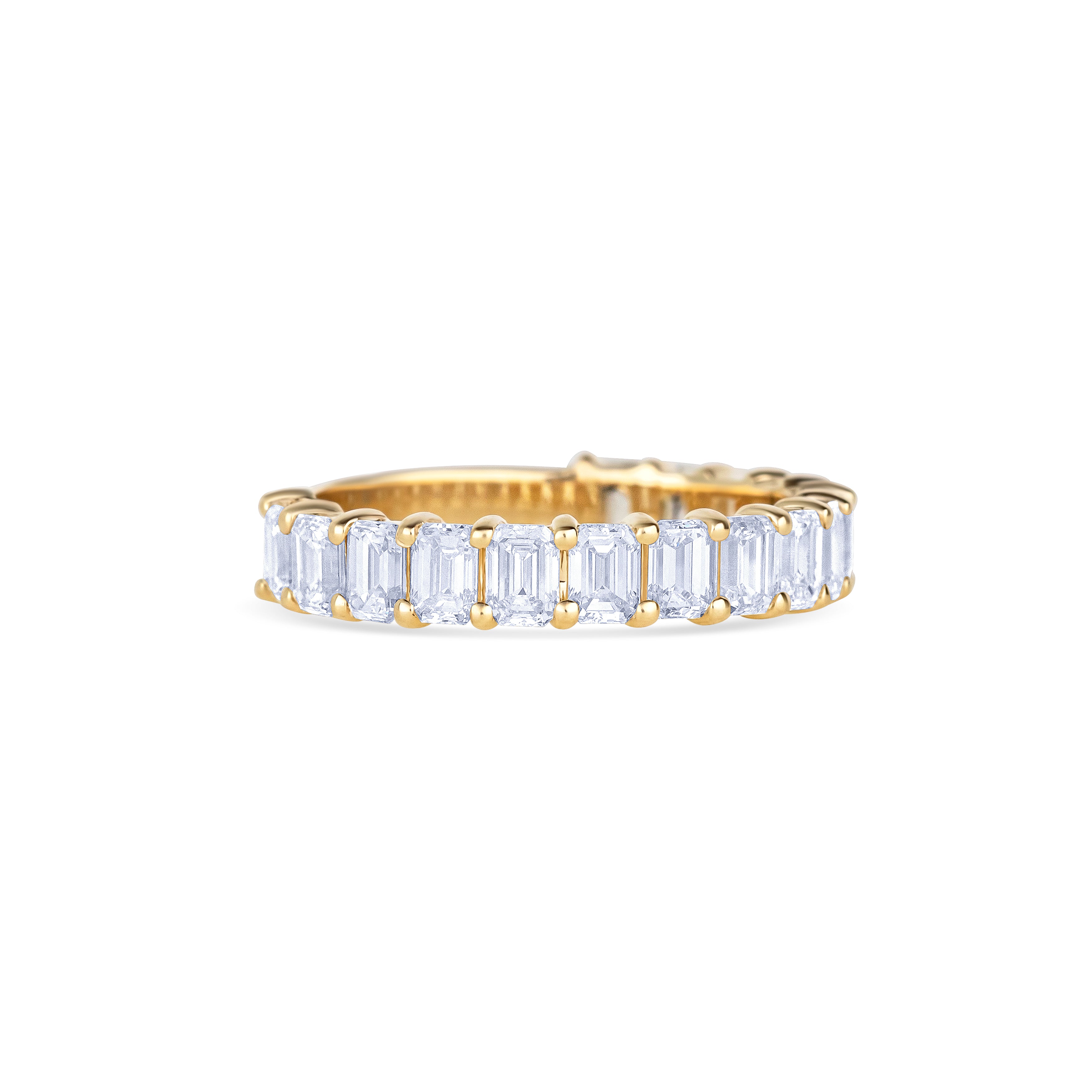 14K Yellow Gold Emerald Cut Diamond Three Quarter Wedding Band