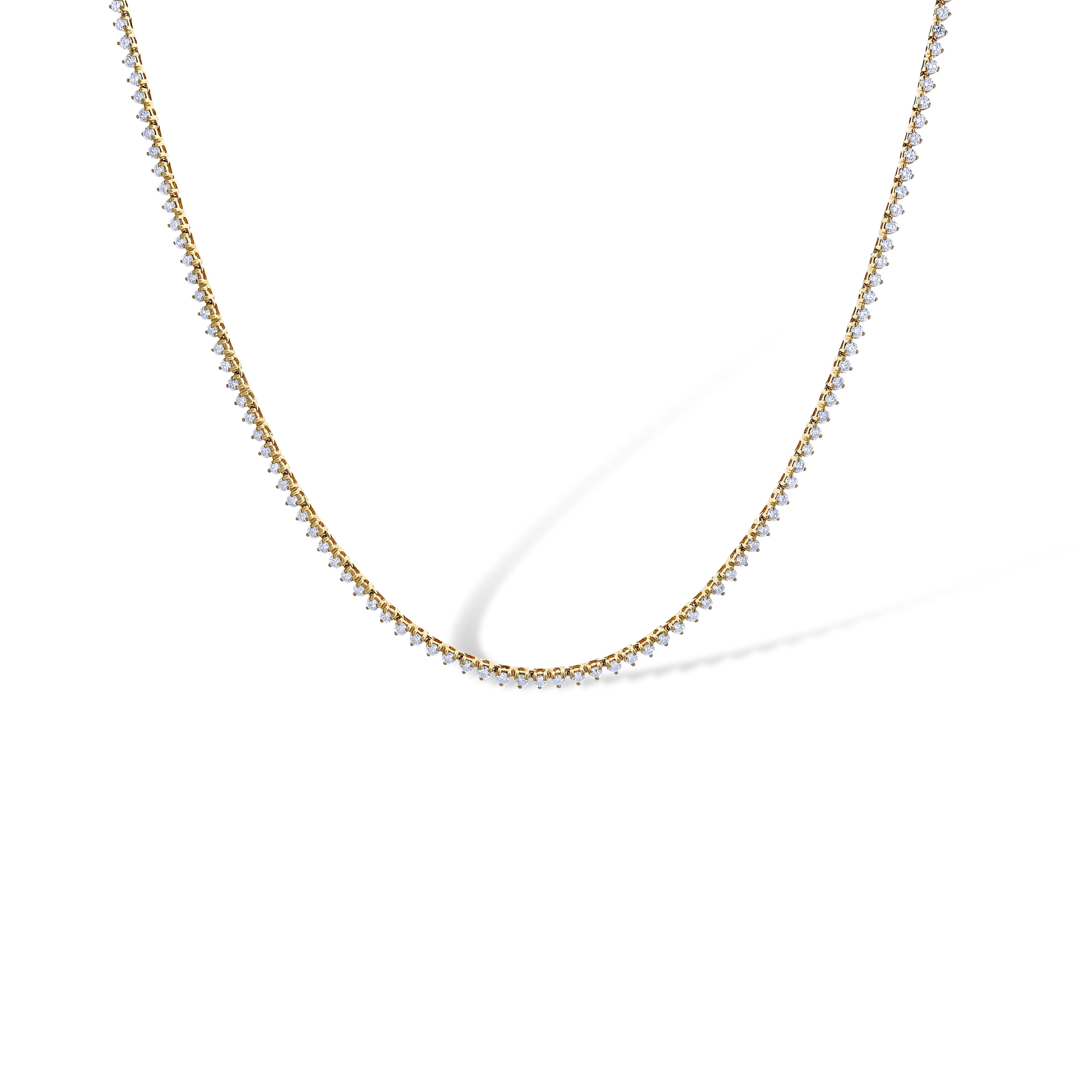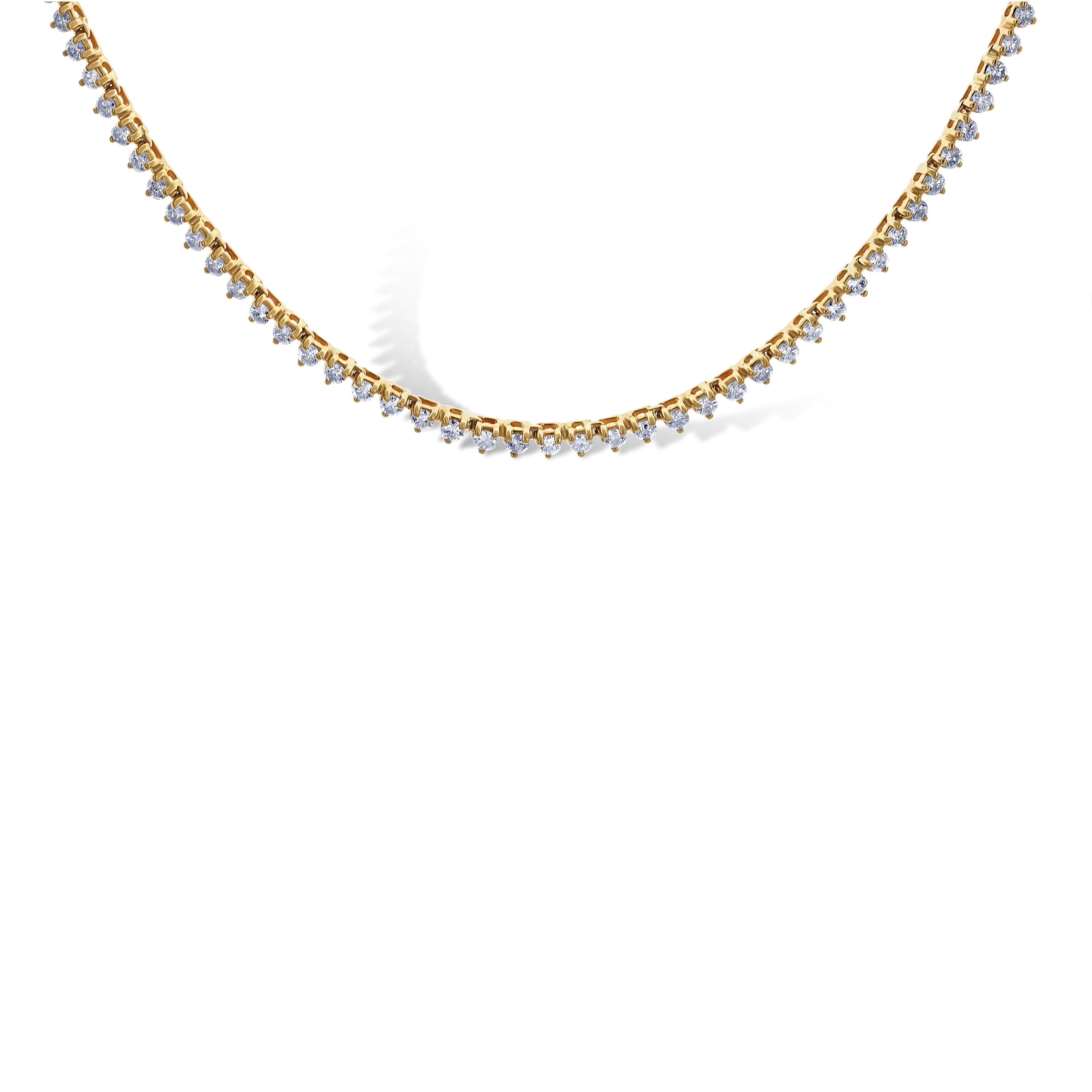 14K Yellow Gold Round Cut Prong Setting Tennis Necklace 17"
