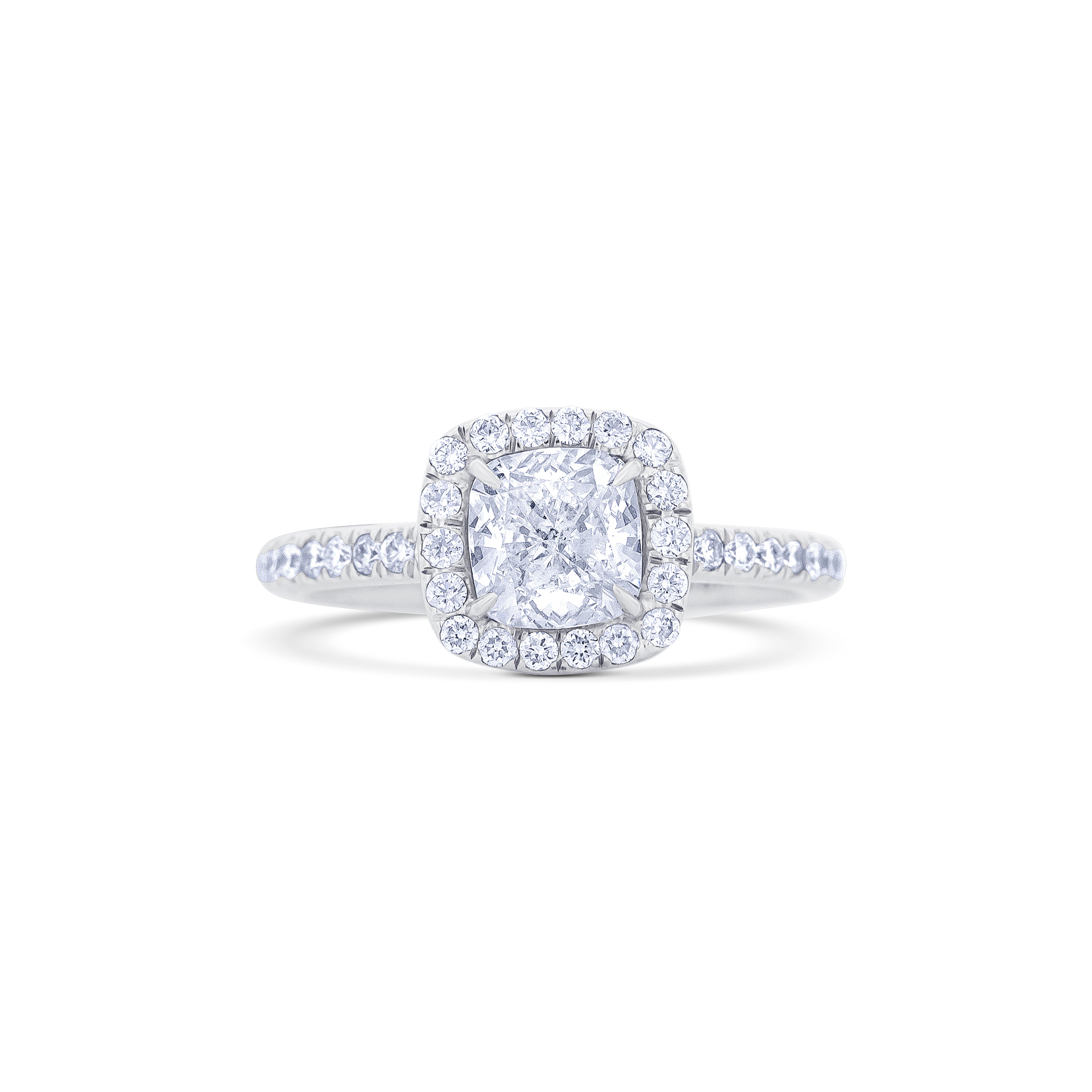 18K White Gold Cushion Diamond Halo Engagement Ring