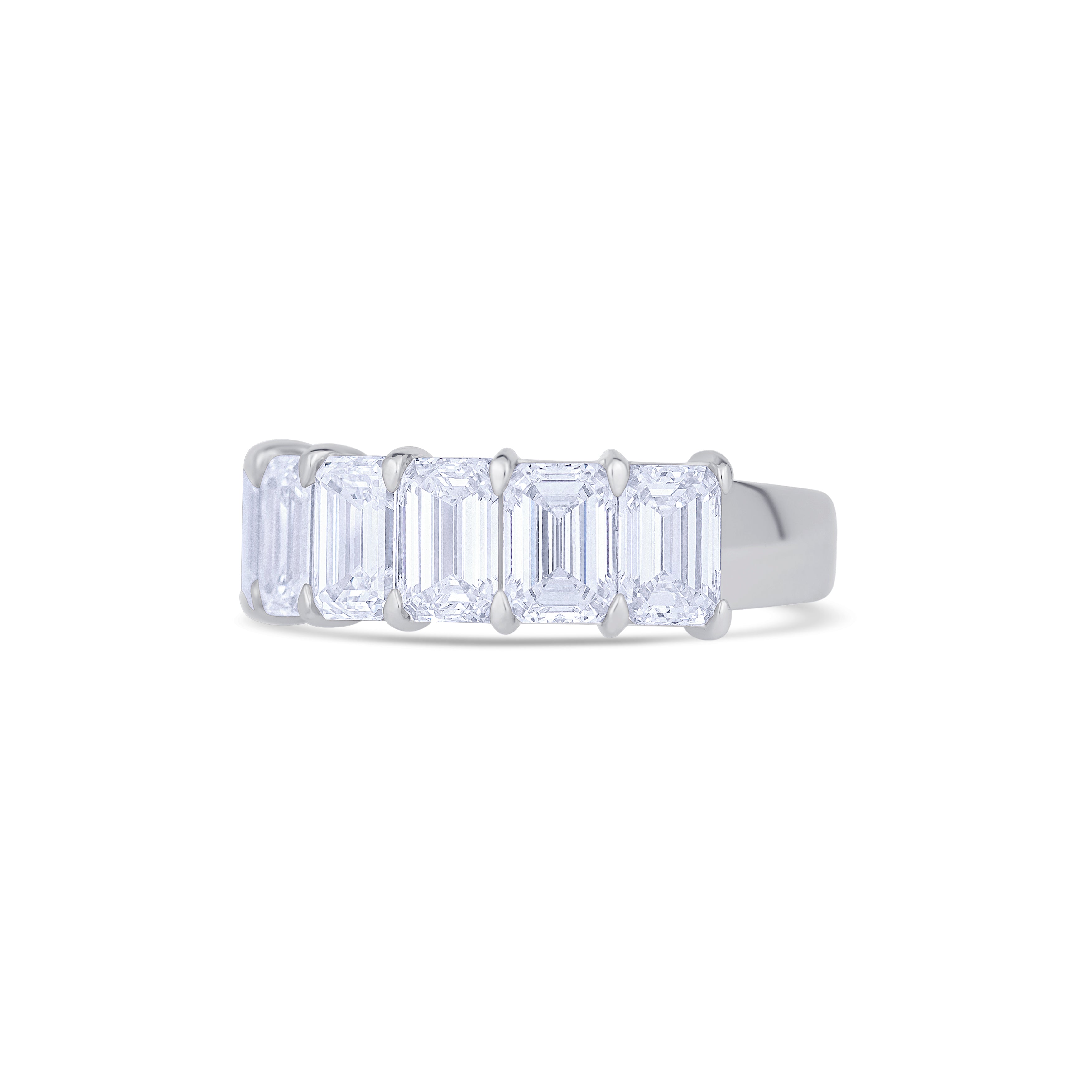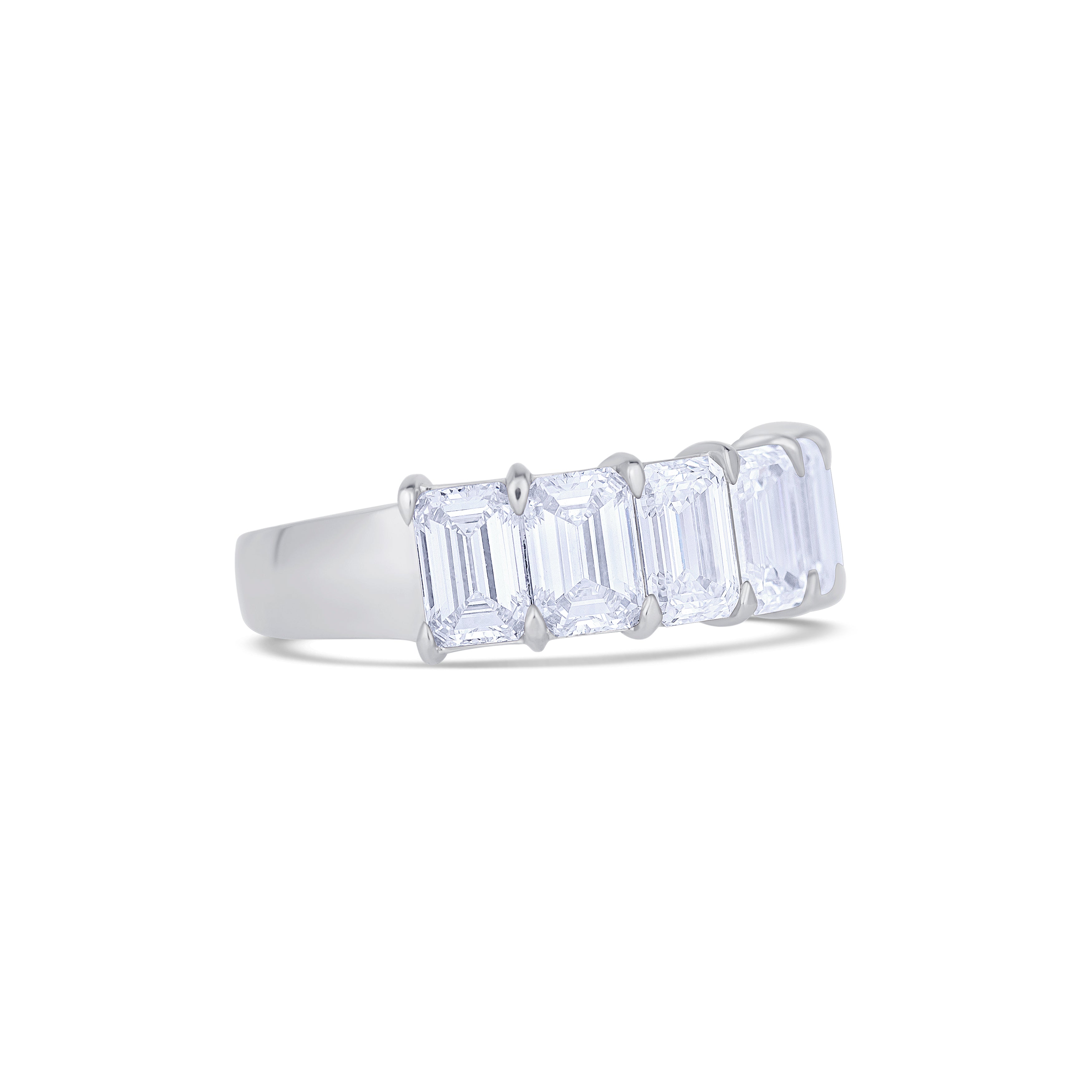 18K White Gold Emerald Cut Diamond Halfway Wedding Band