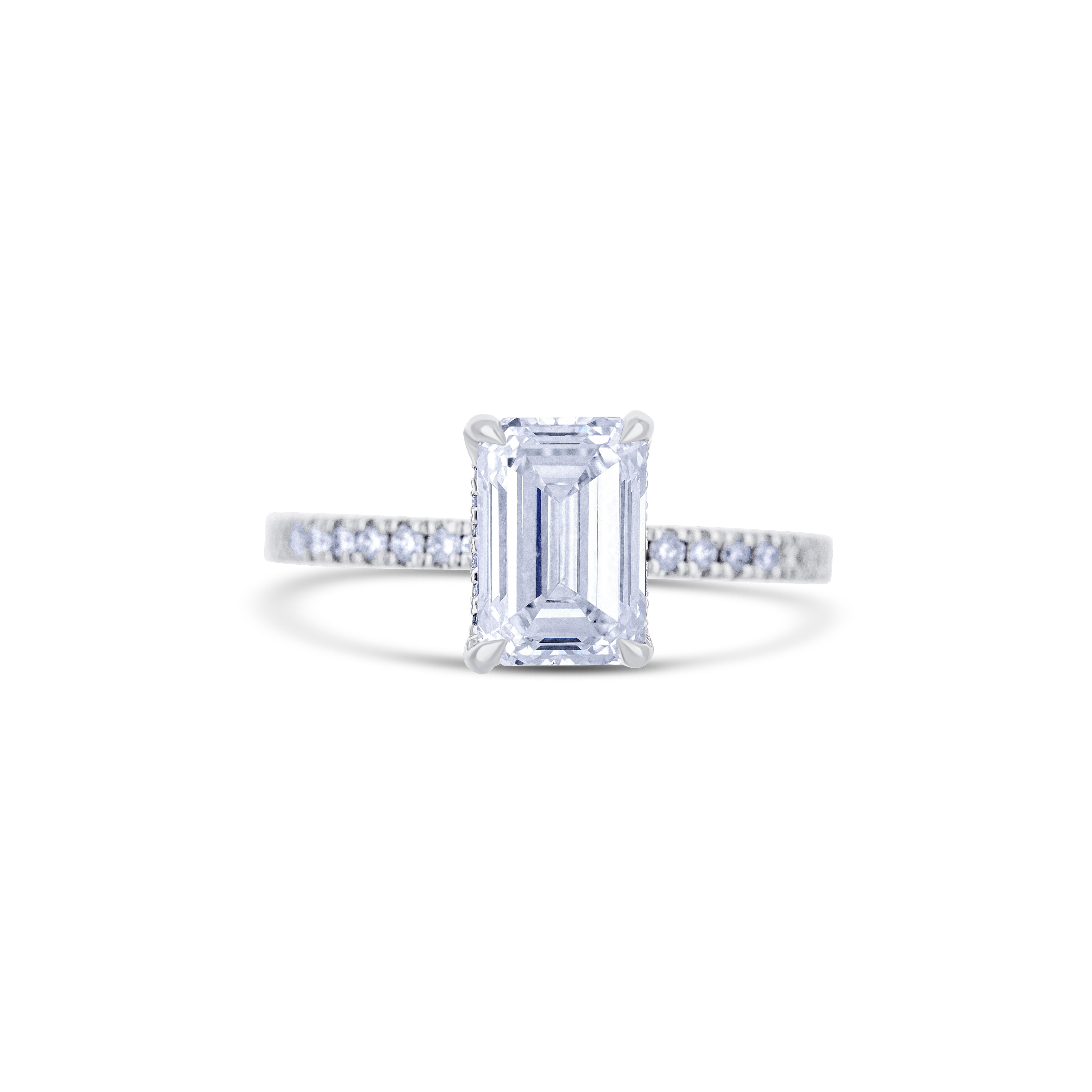 18K White Gold Emerald Cut Diamond Lab Grown Engagement Ring