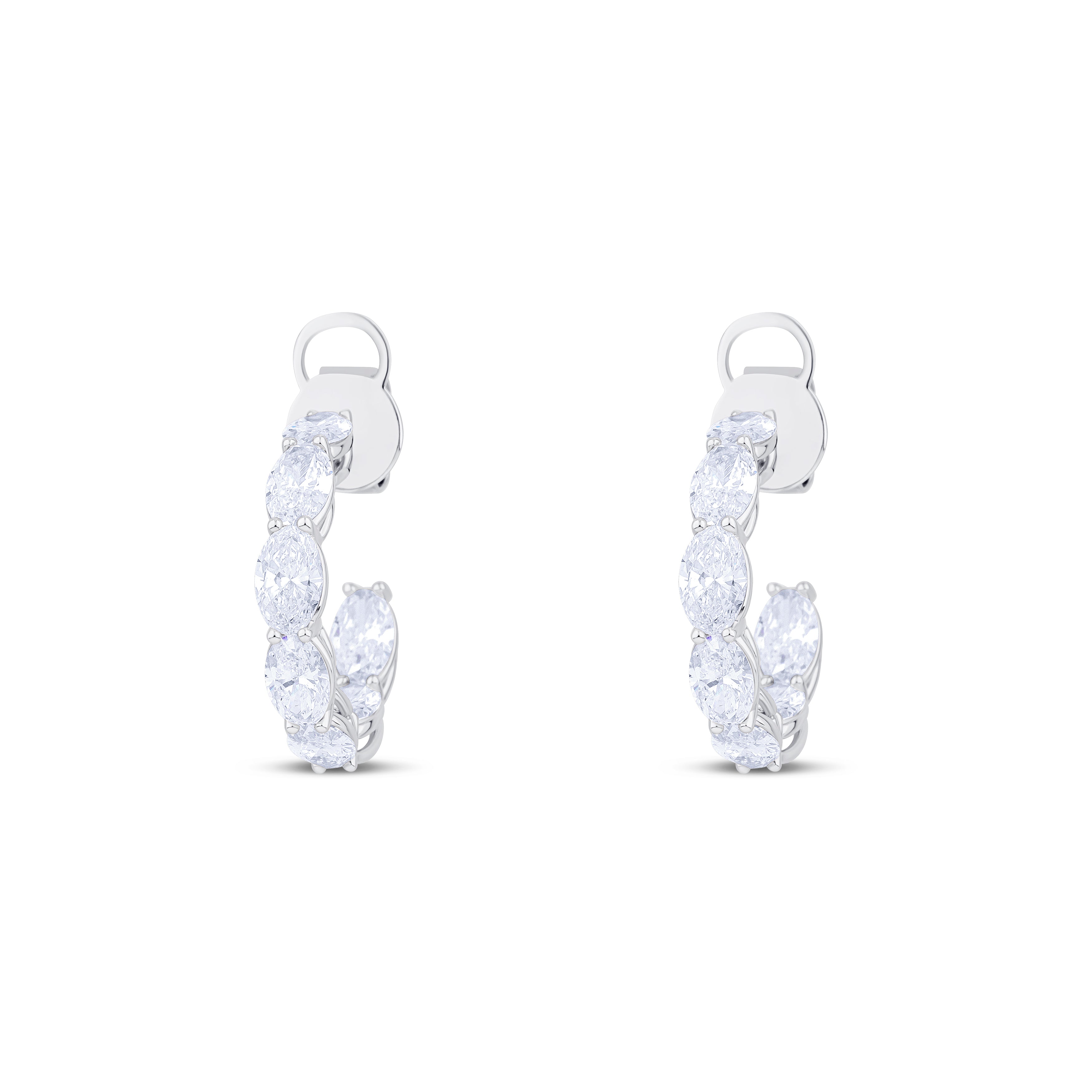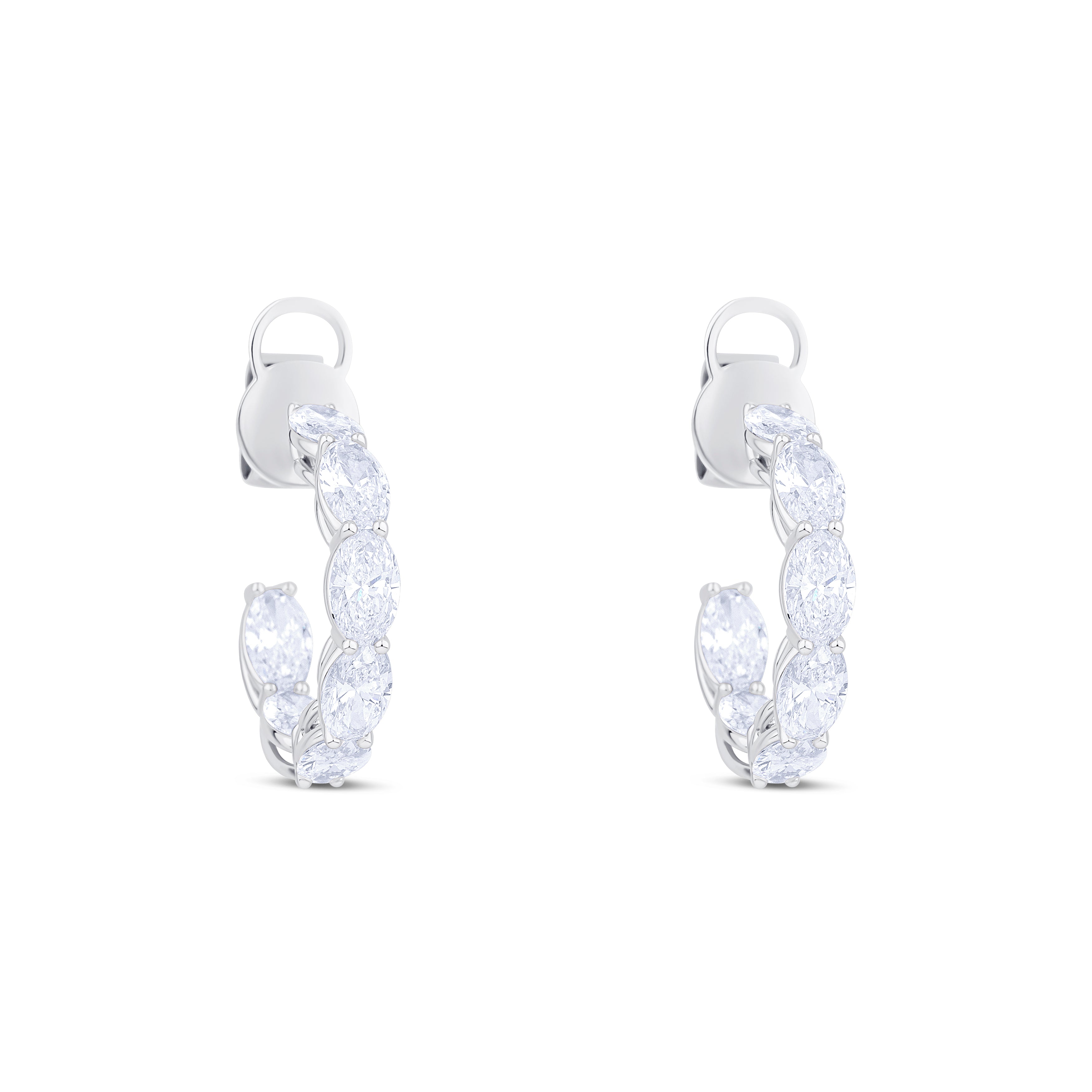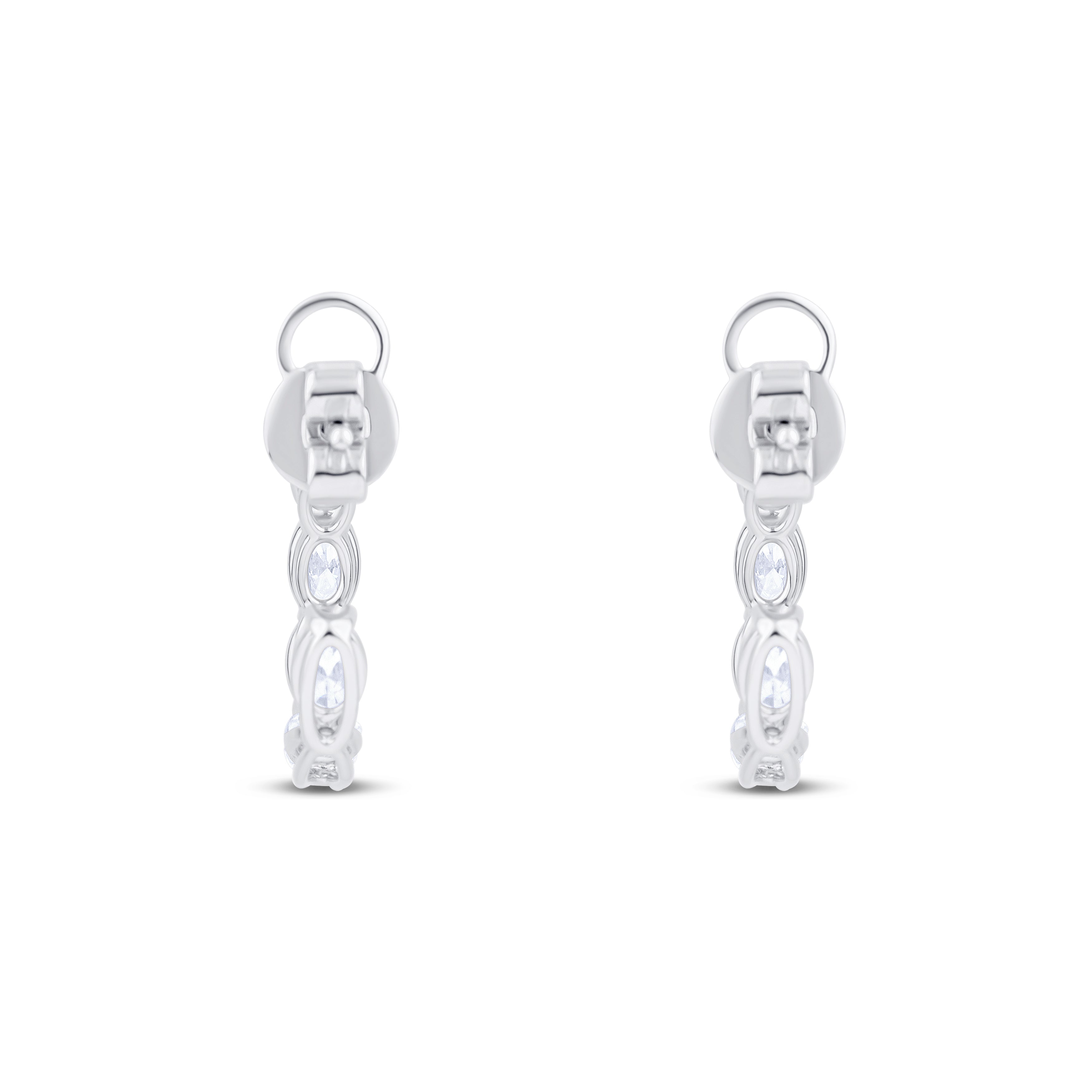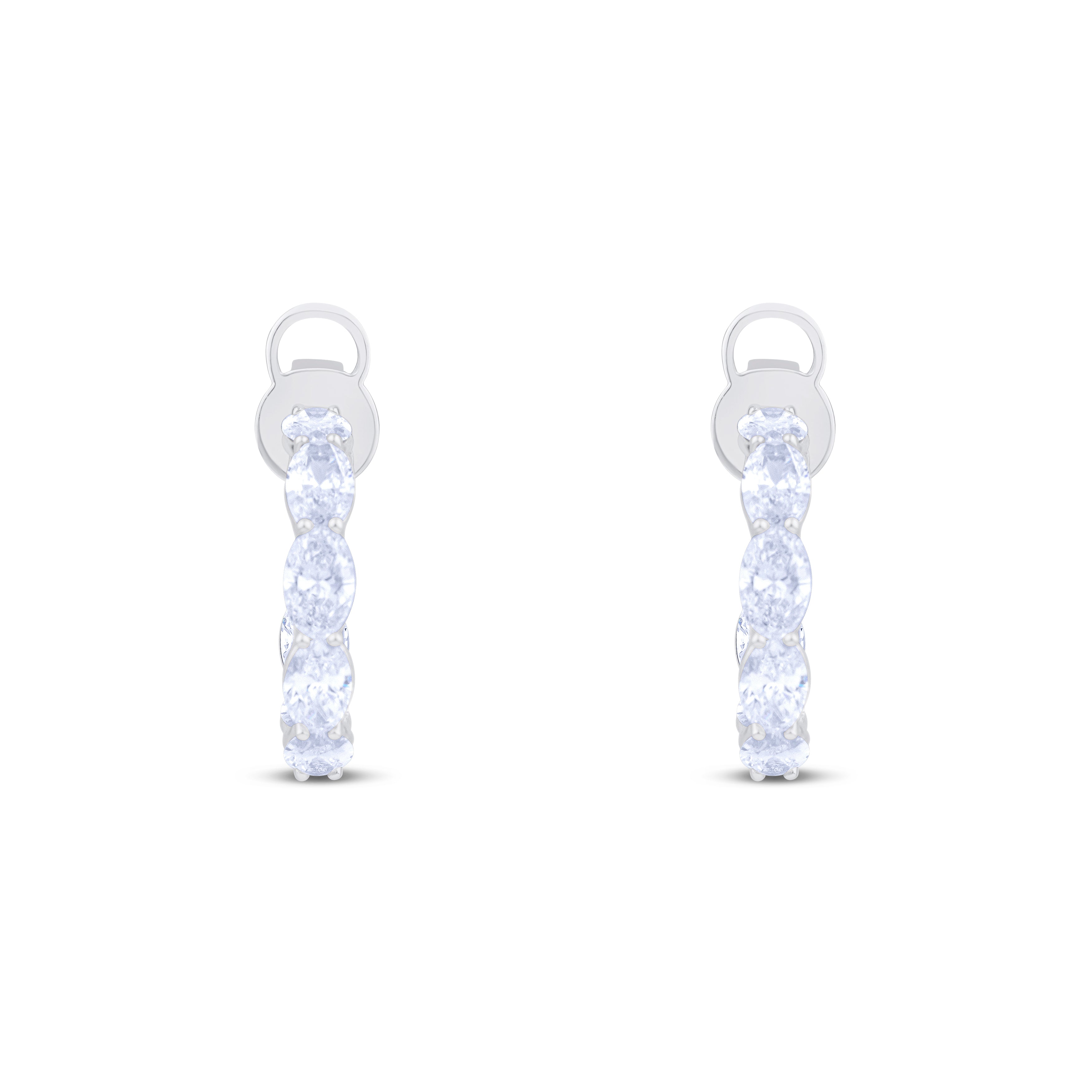 18K White Gold Oval Cut Diamond Huggie Earrings