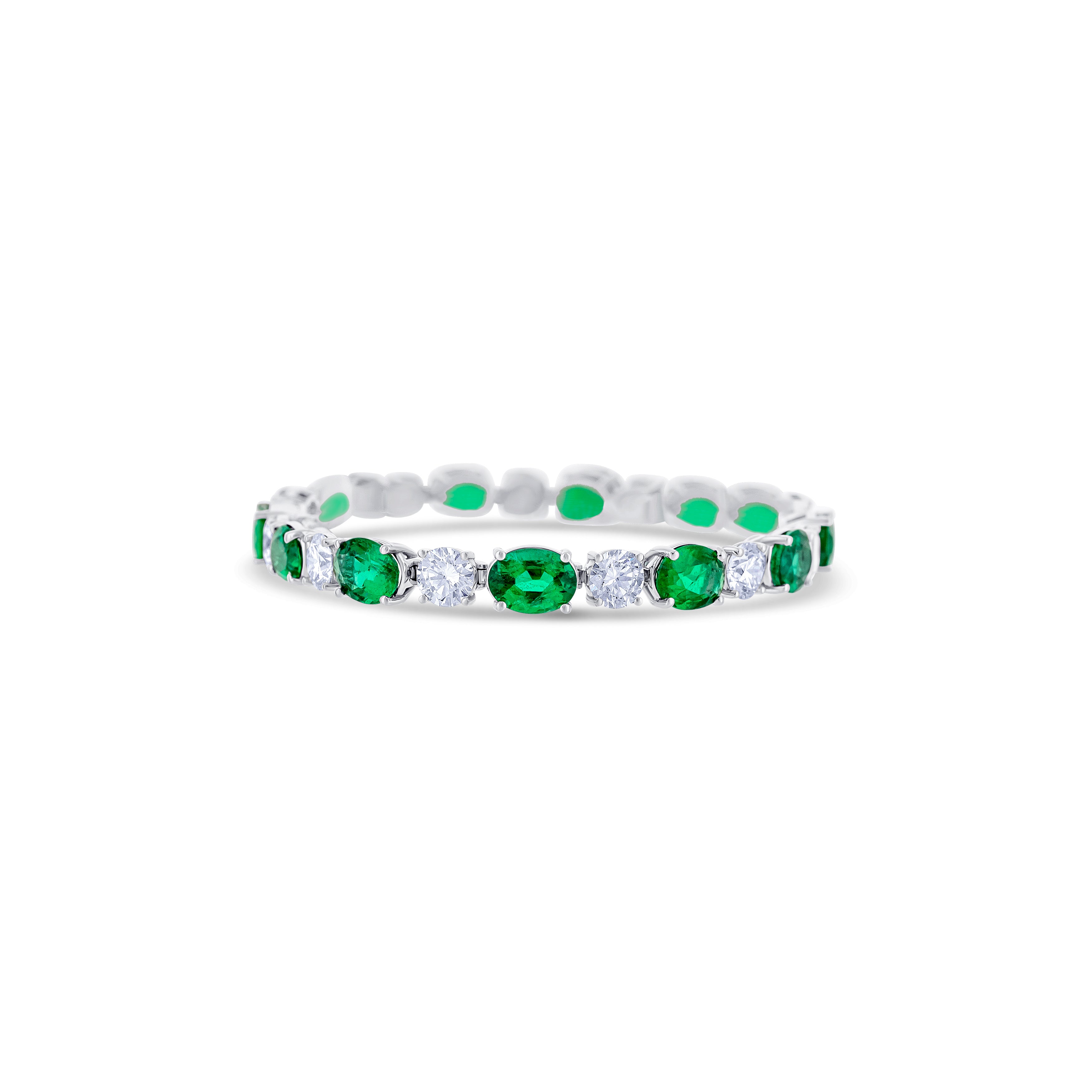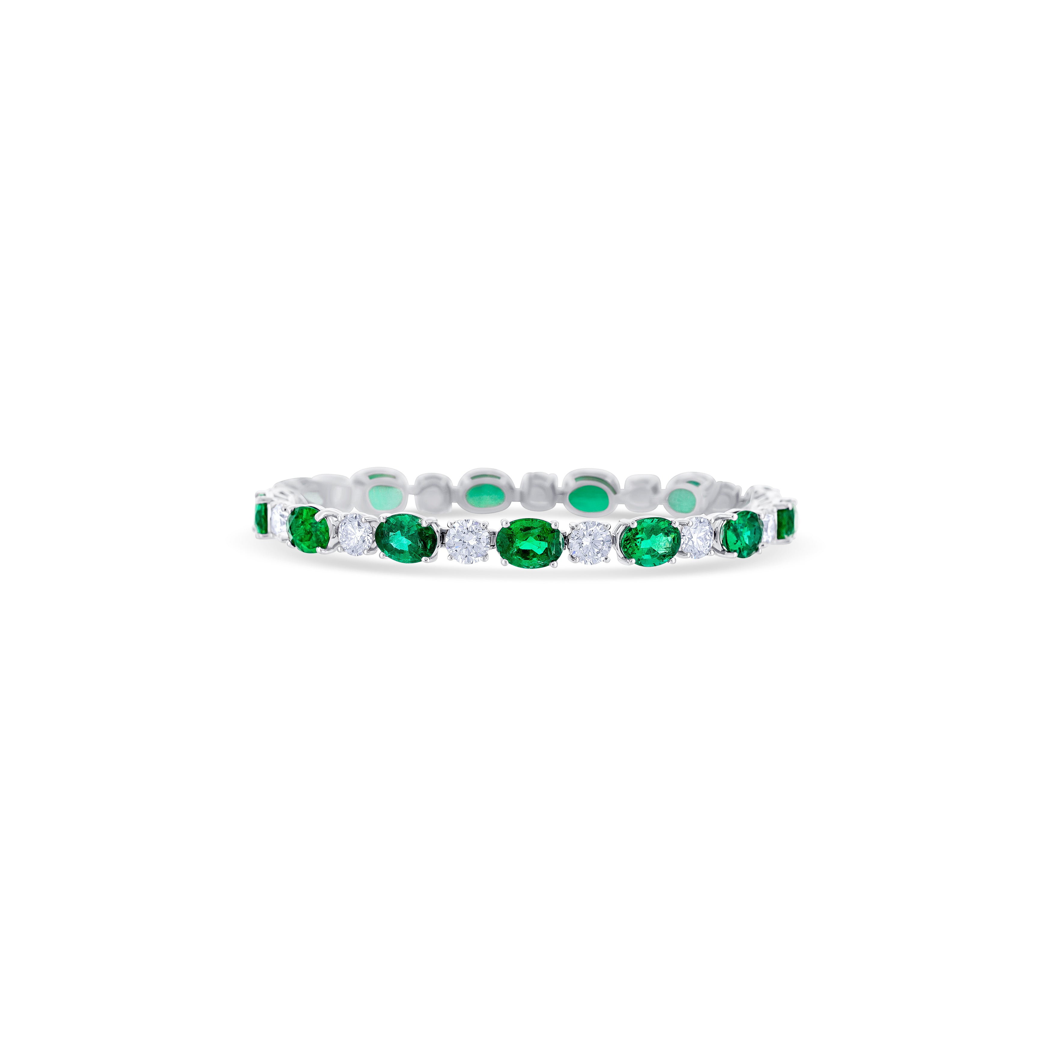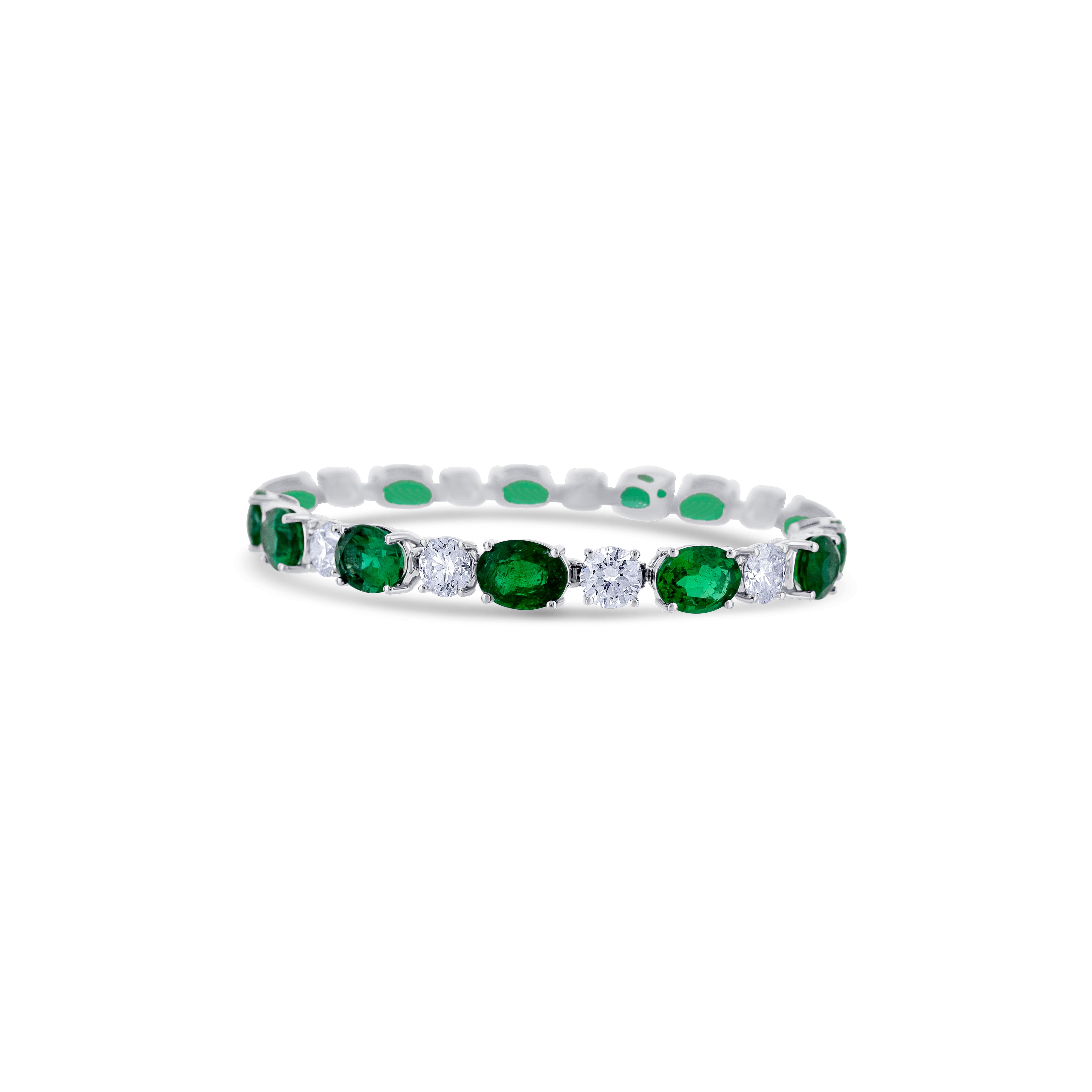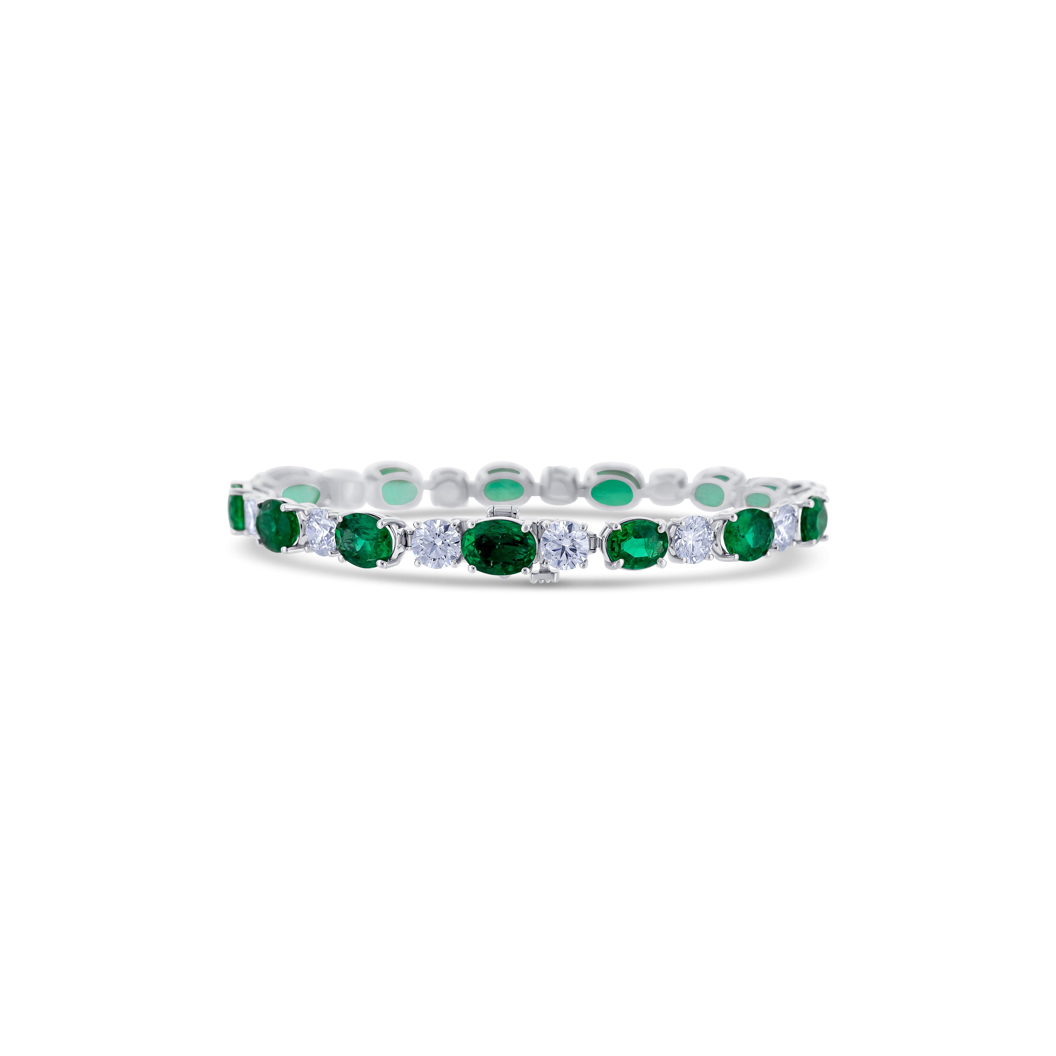 18K White Gold Oval, Emerald and Round Cut Diamonds Tennis Bracelet
