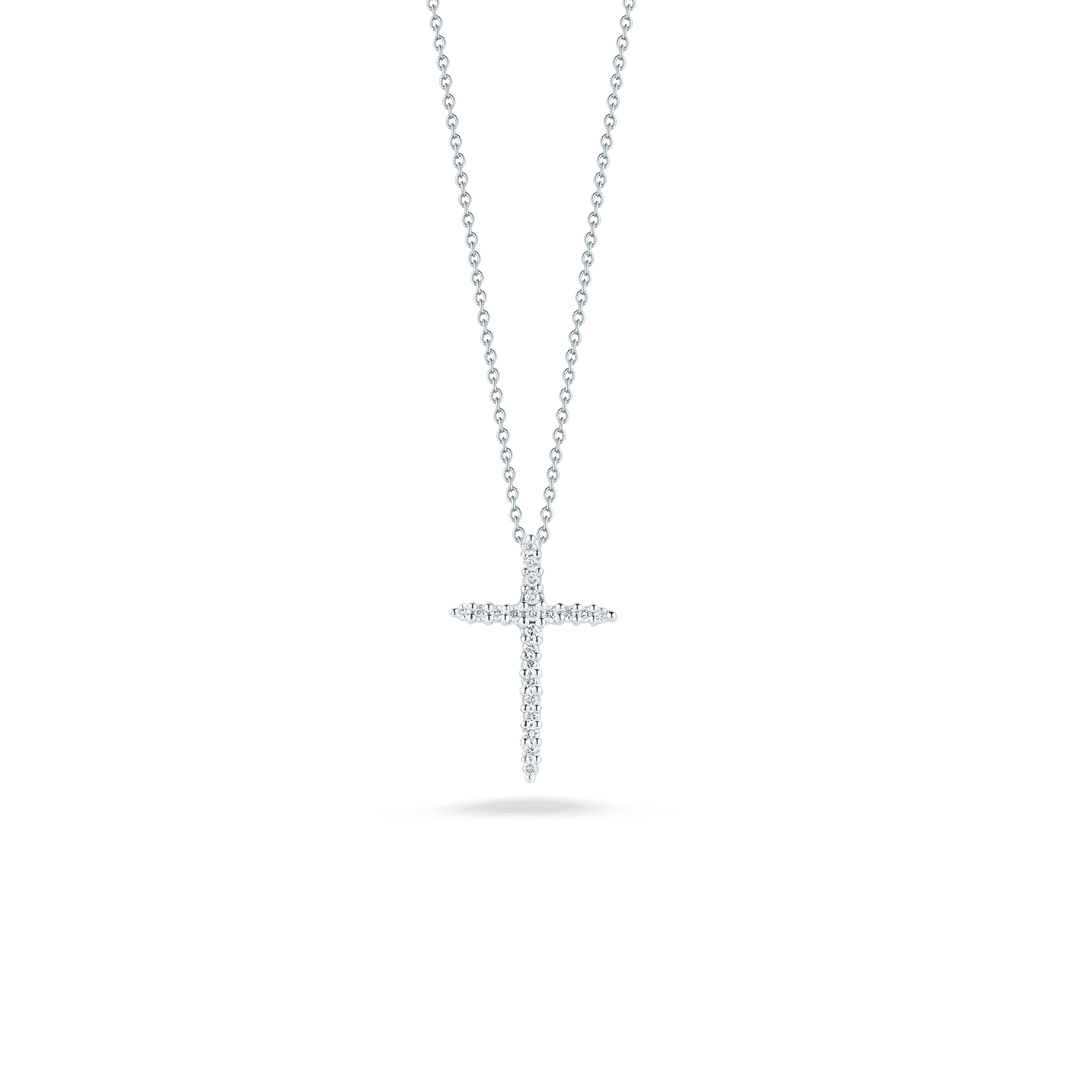 Set on a modest chain, this 18k Italian gold diamond cross pendant is a versatile piece and one of Roberto Coin's top sellers. - 001618AWCHX0