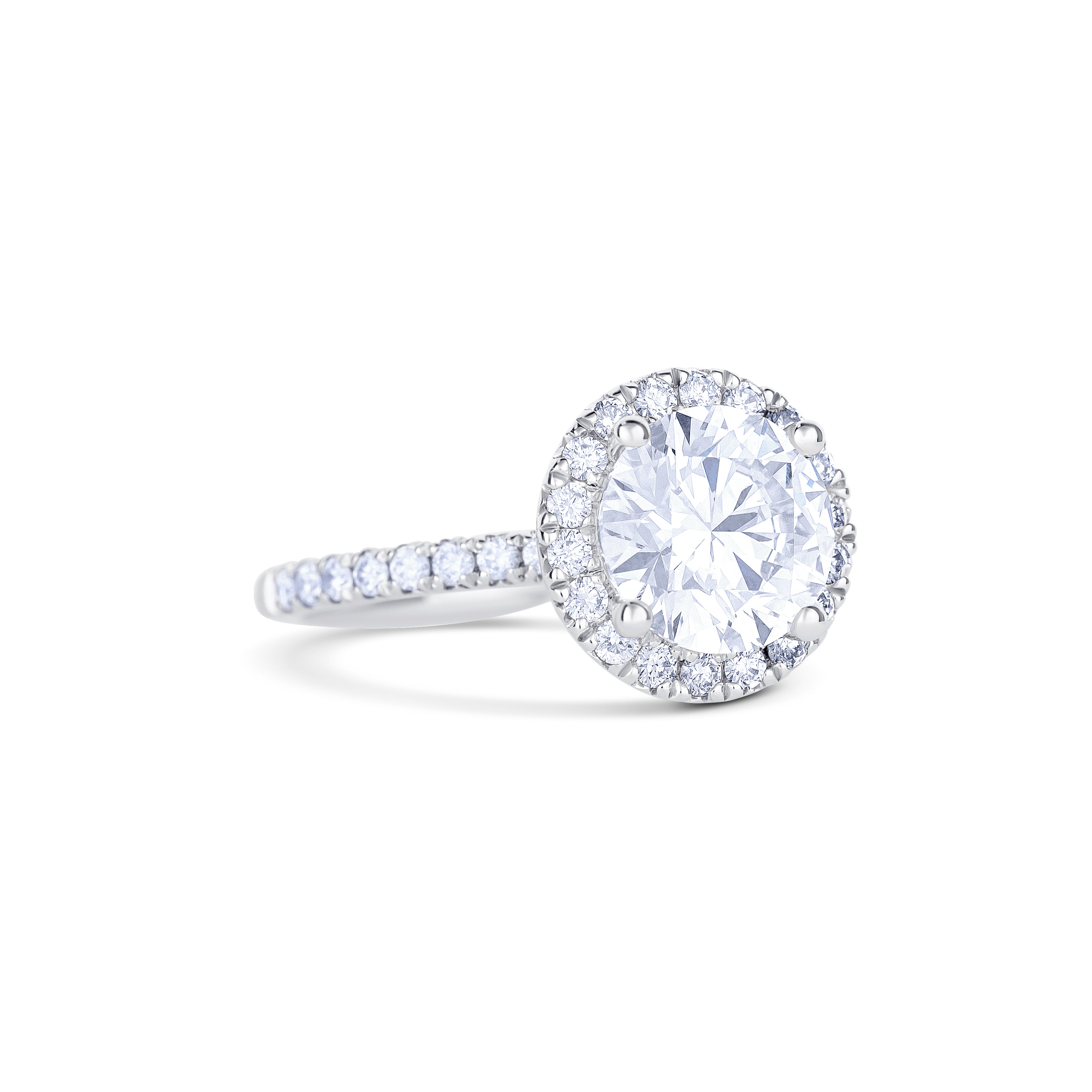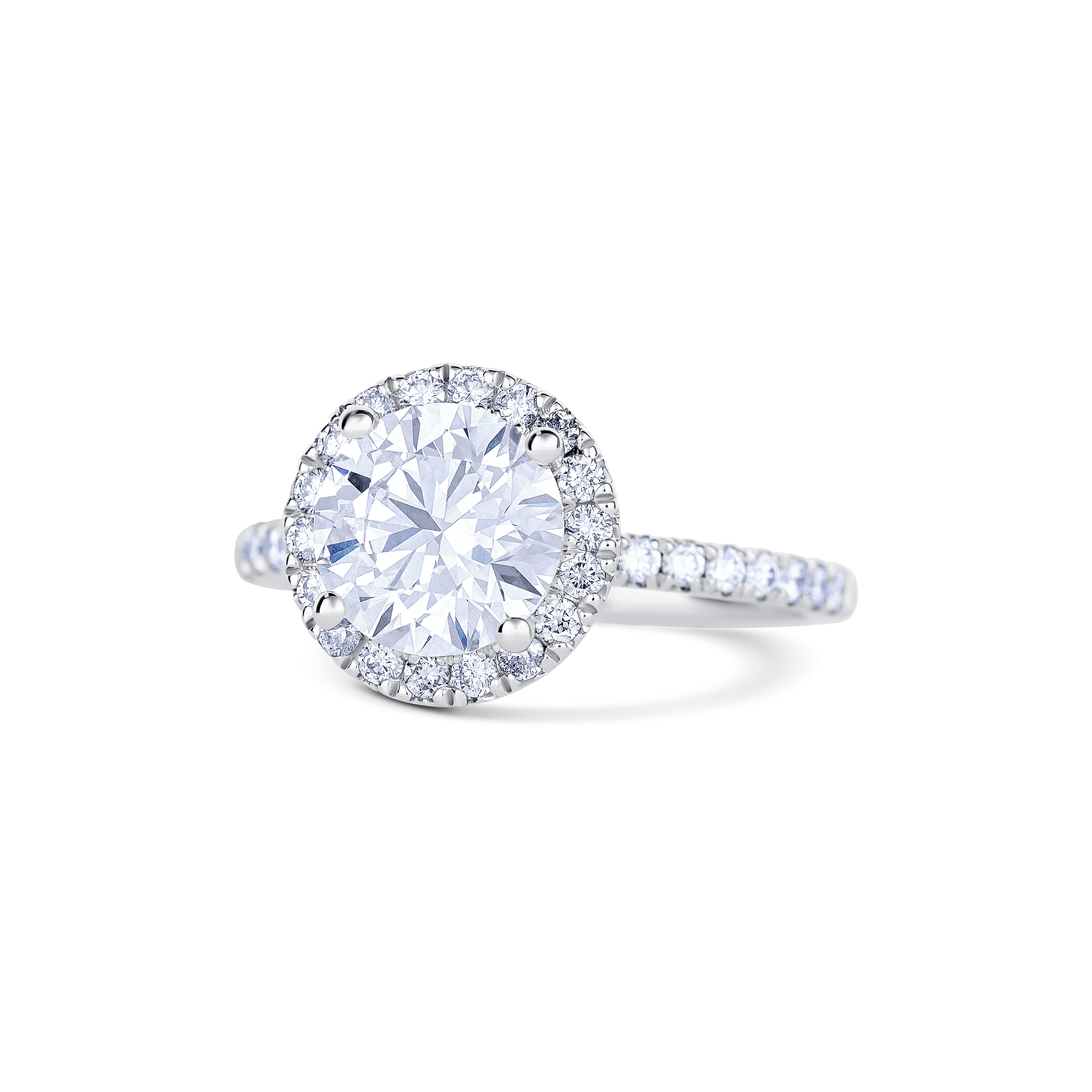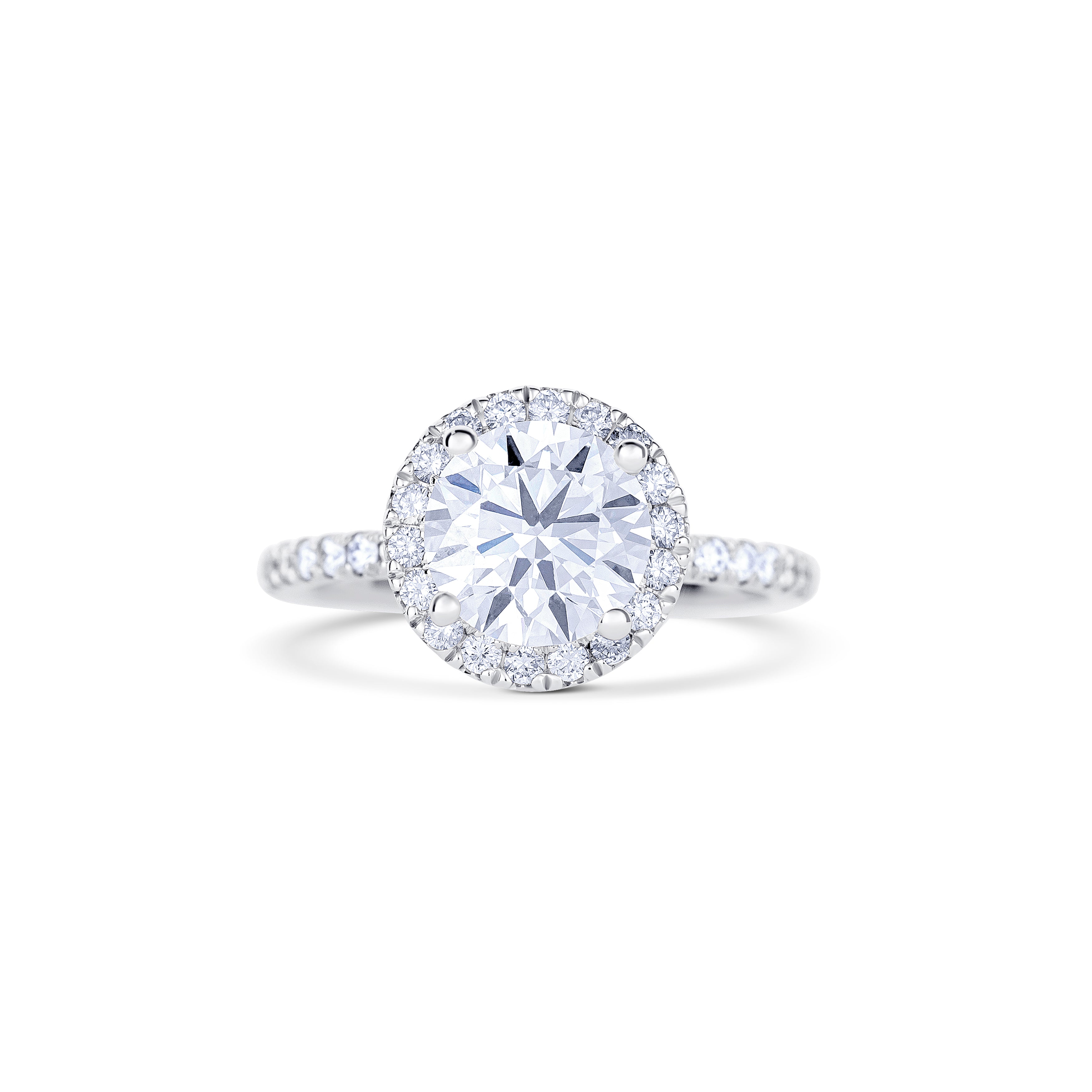 18K White Gold Round Diamond Halo Lab Grown Engagement Ring