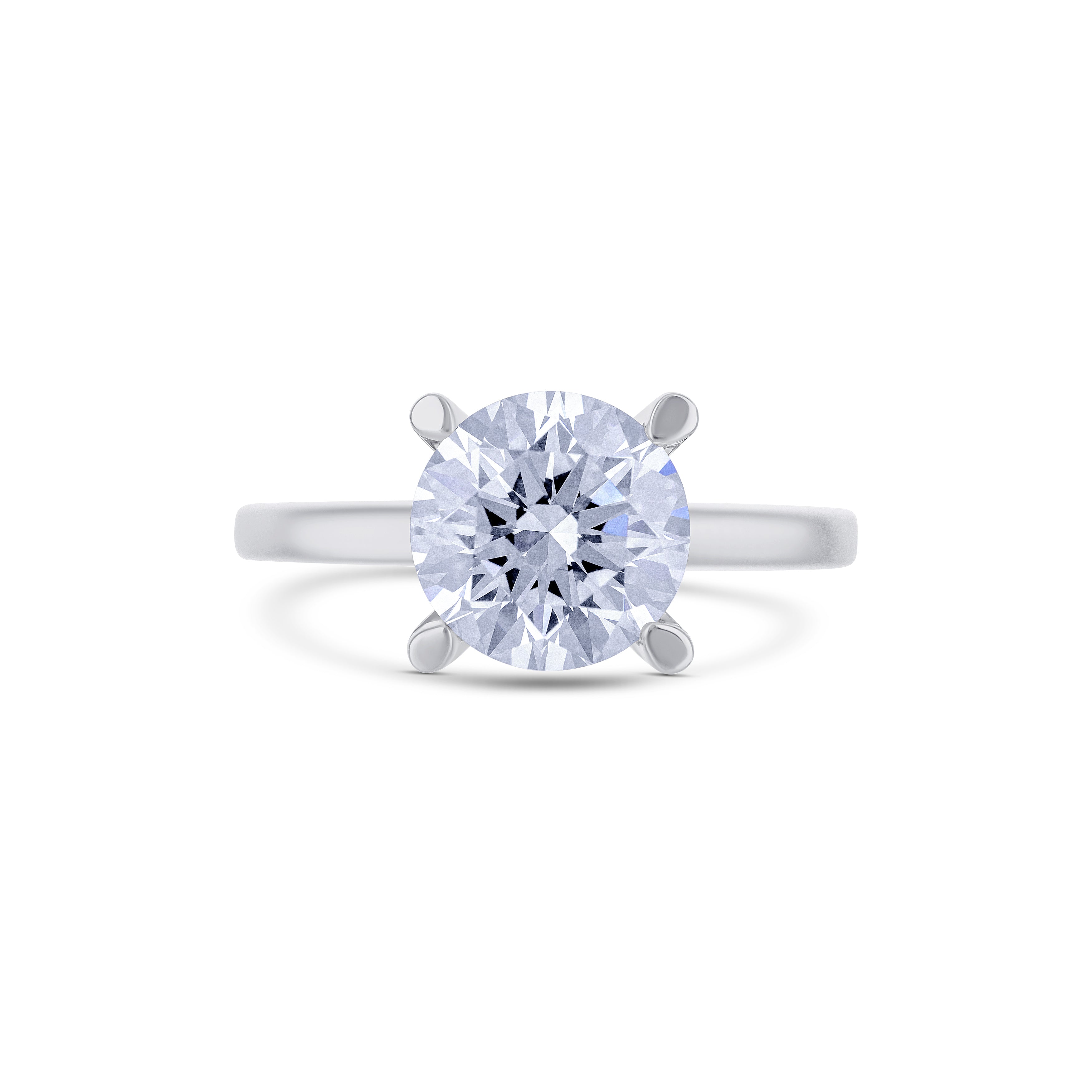 18K White Gold Round Cut Diamond with Hidden Diamond Halo Lab Grown Engagement Ring