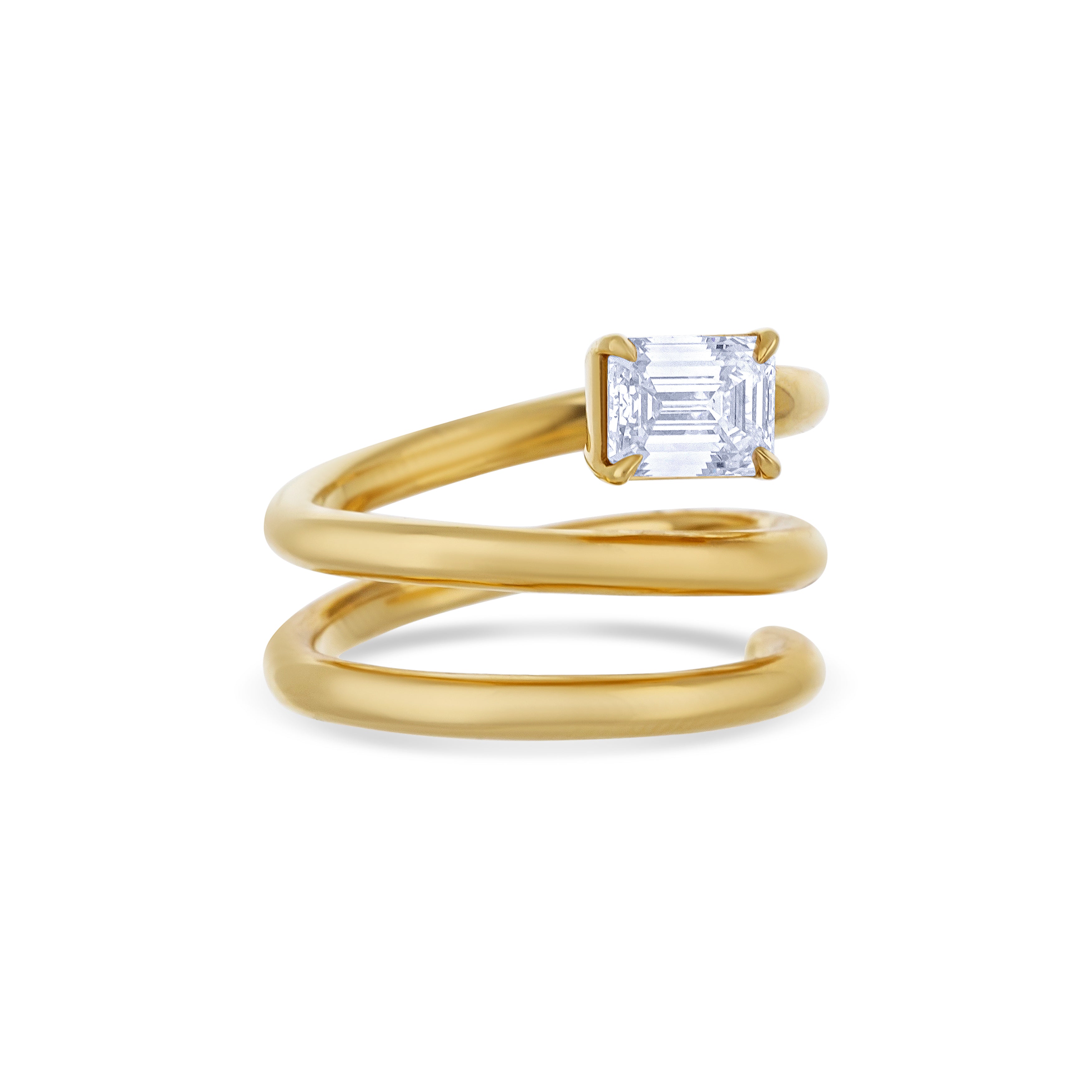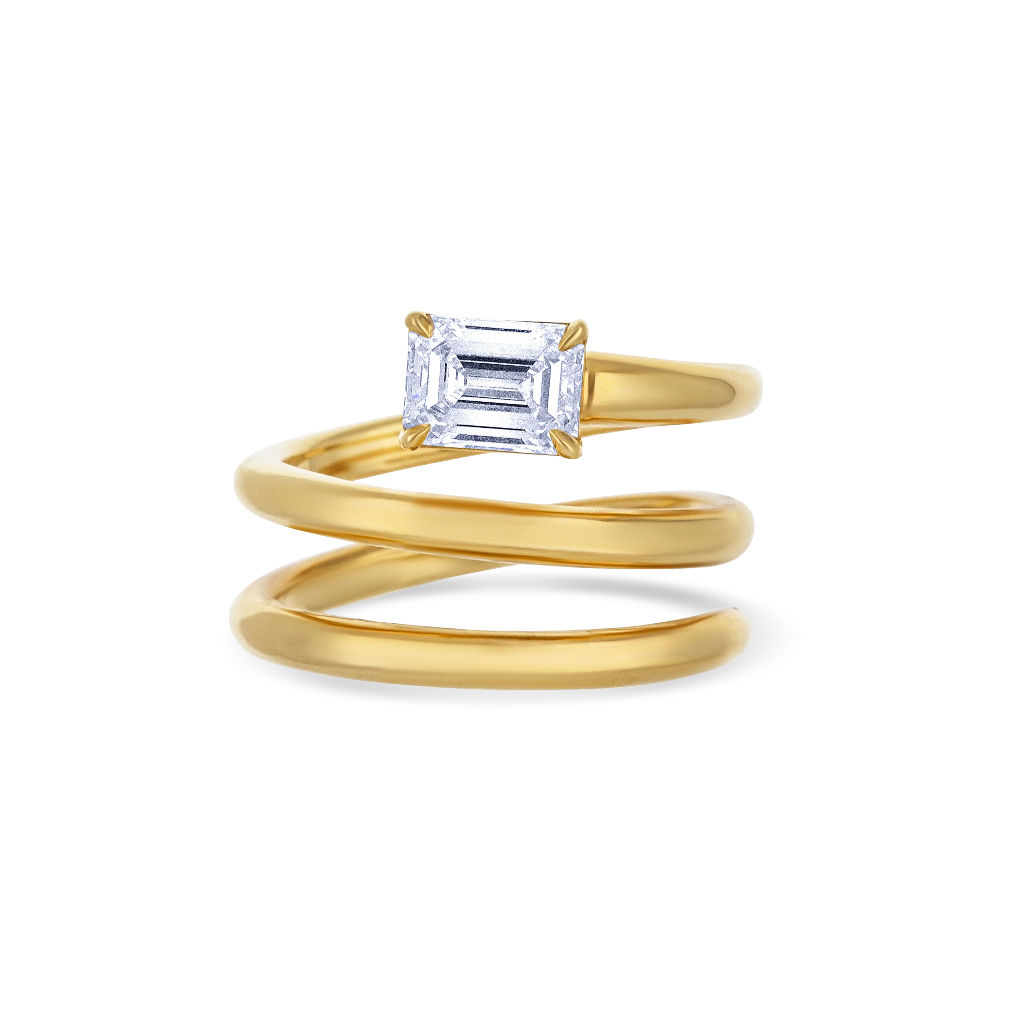 18K Yellow Gold Emerald Cut Diamond Spiral Ring