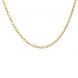 Elegant and luxurious, a 18K yellow gold tennis necklace embodies the peak of opulence. The beautiful gold gives this necklace a satisfying heft, but the brilliant round diamonds give this necklace the appearance of an ethereal lightness. 206 Diamonds shine bright with a diamond total carat weight of 4.58 carats.