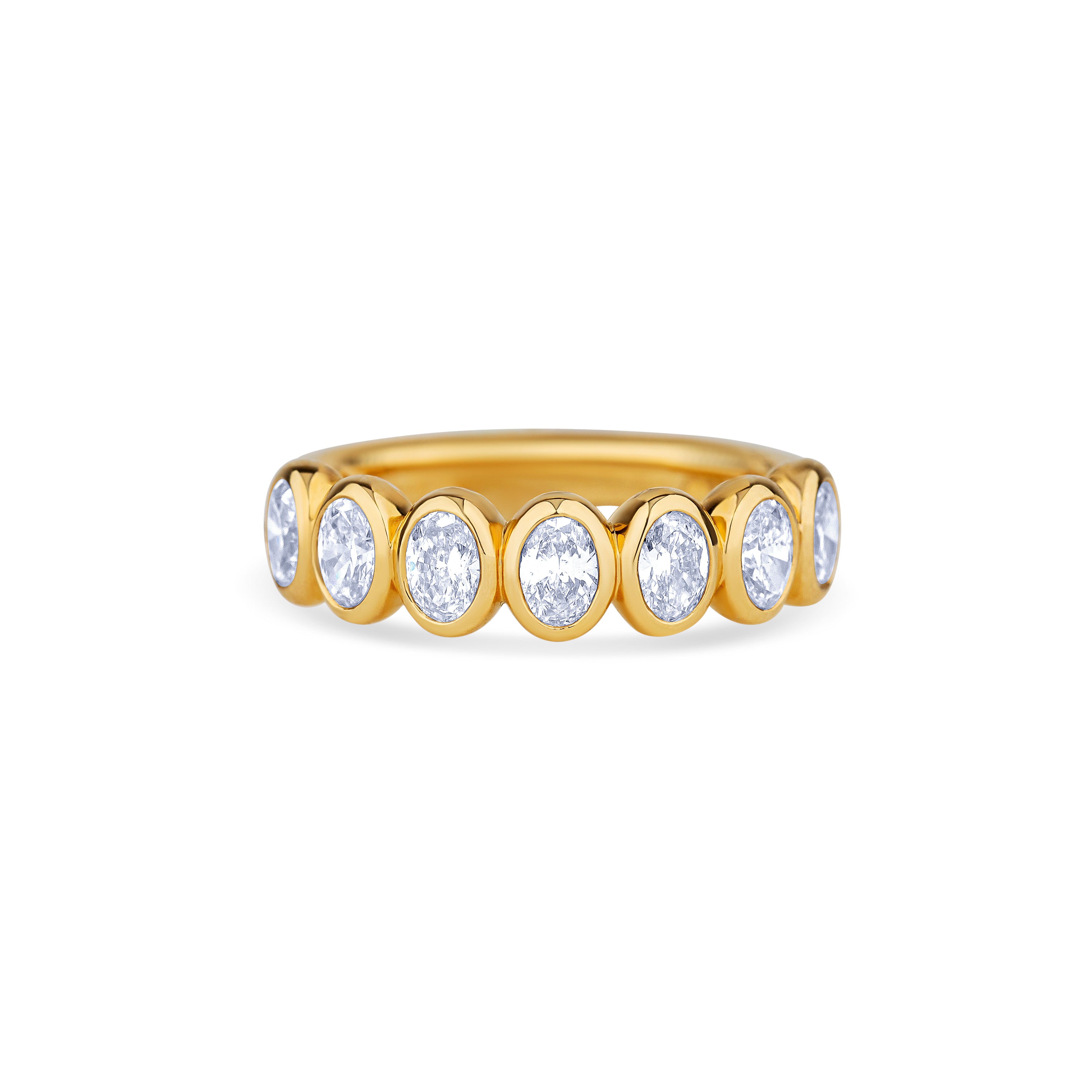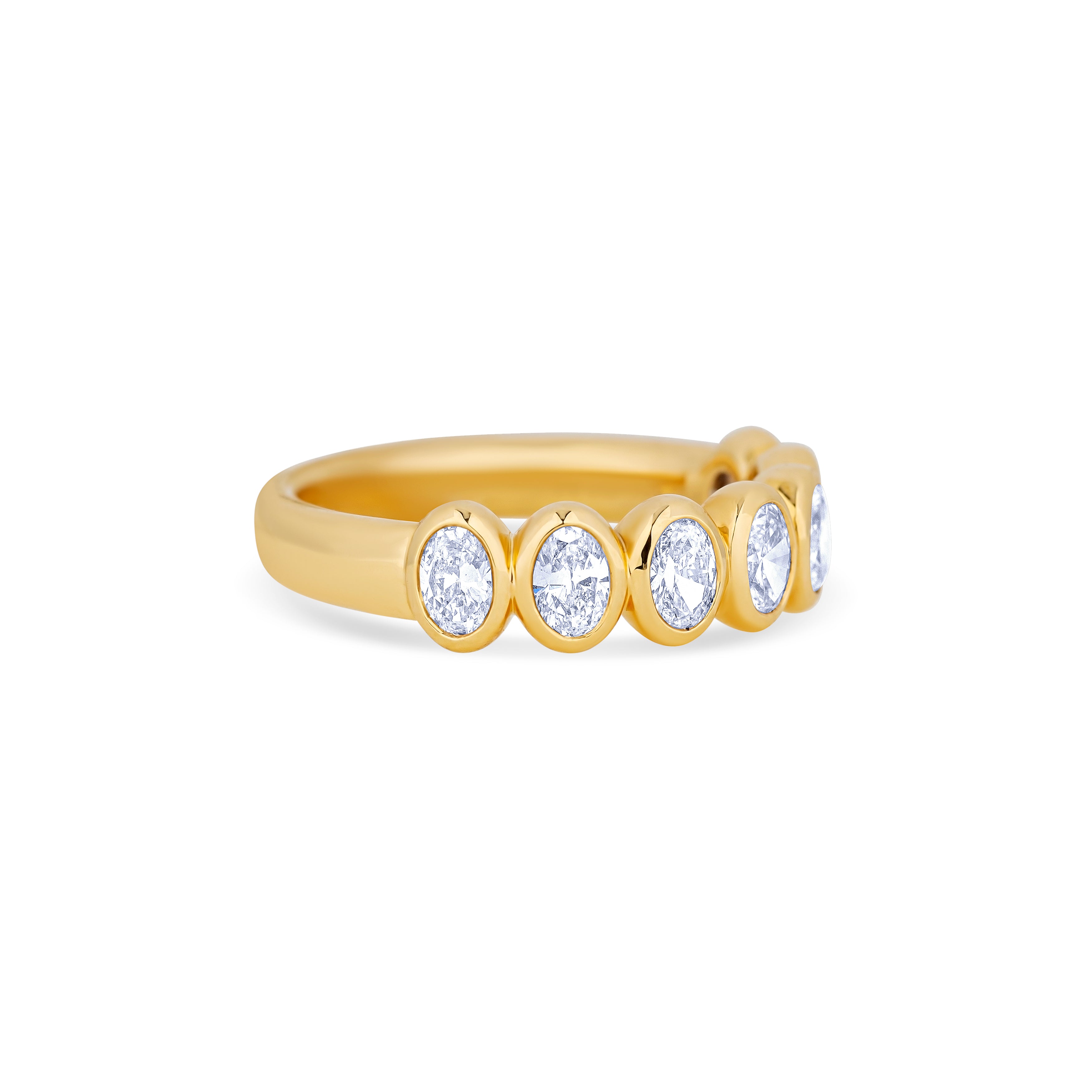 18K Yellow Gold Oval Cut Bezel Set Diamond Halfway Wedding Band
