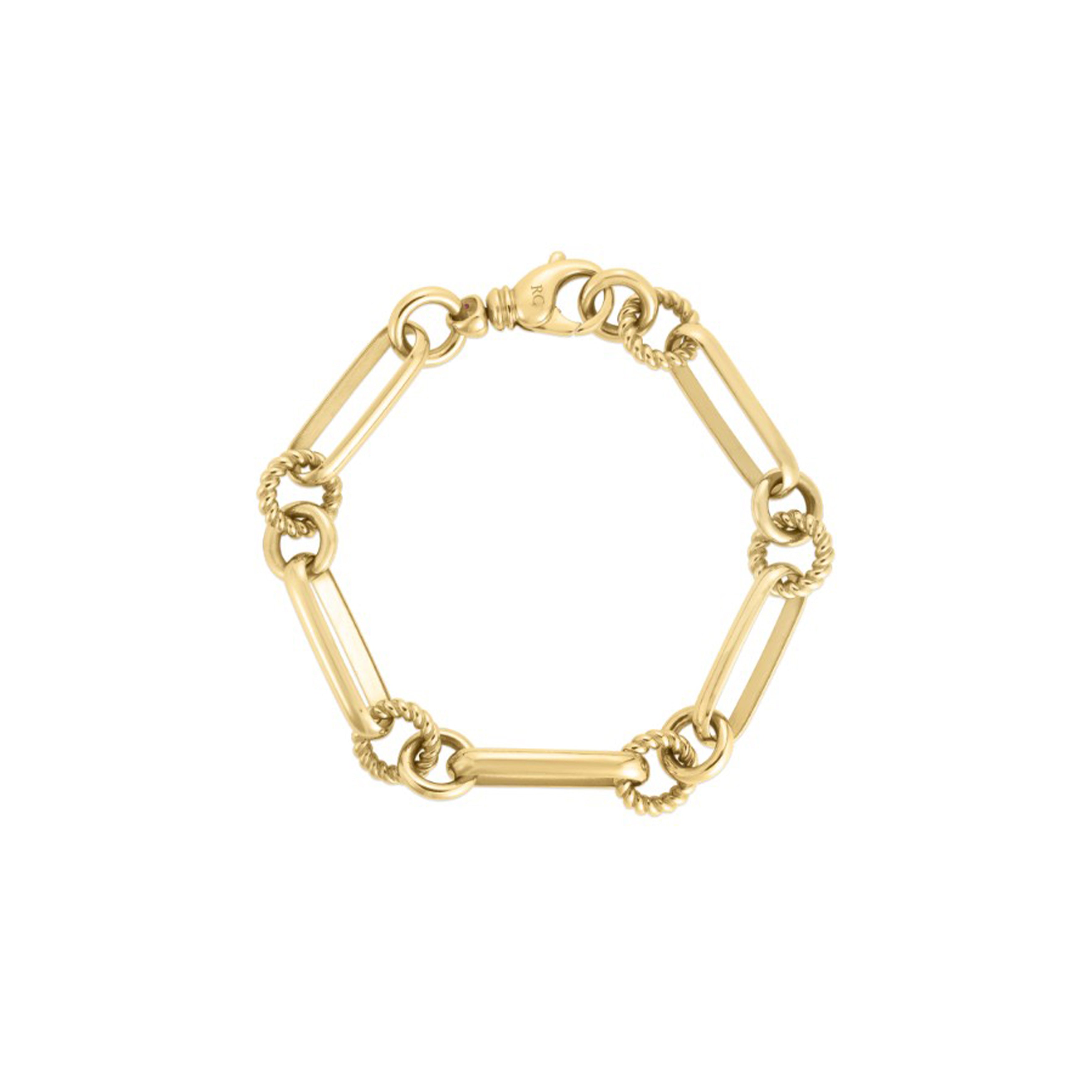 This unique 18k Italian gold chain bracelet combines different link sizes, textures, and shapes for interesting visual appeal and undeniable sophistication. - 9151260AYGB0