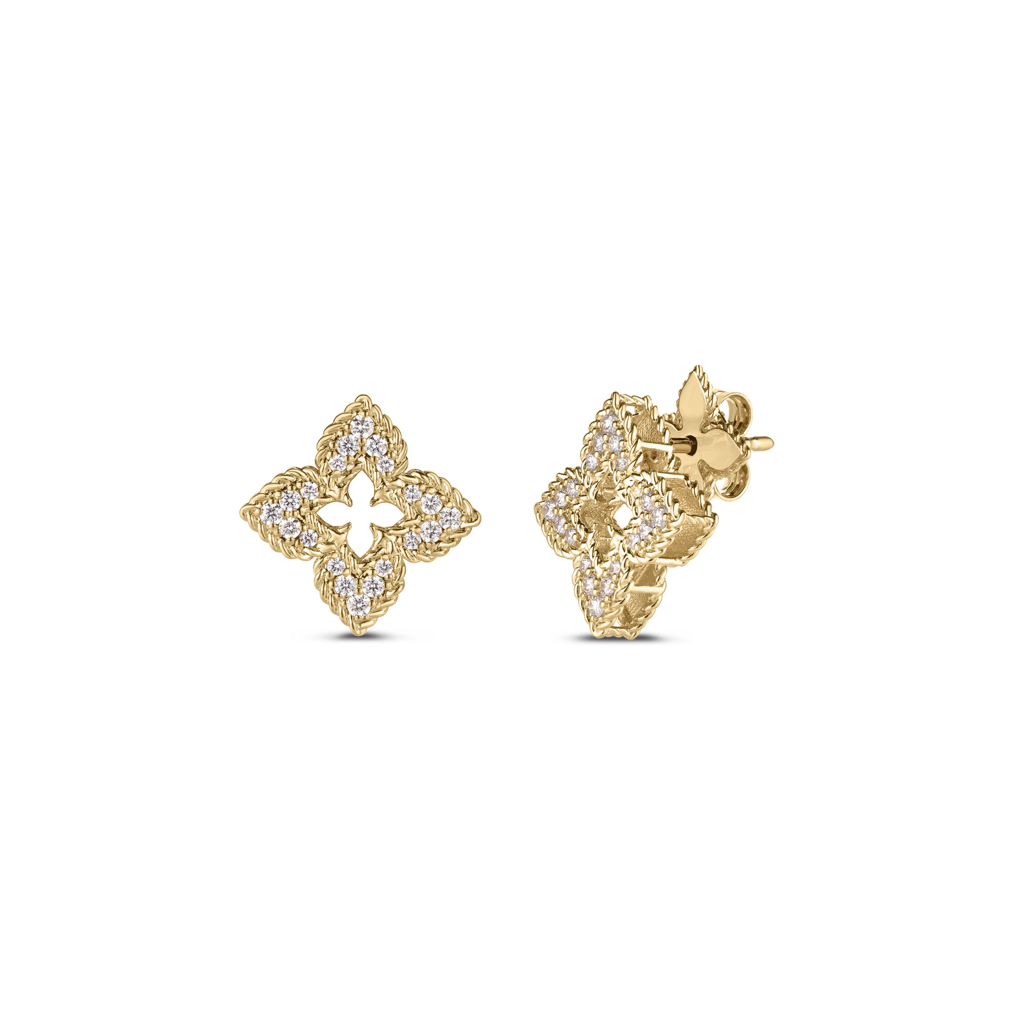 18K Yellow Gold Roberto Coin Venetian Princess Diamond Small Flower Earring