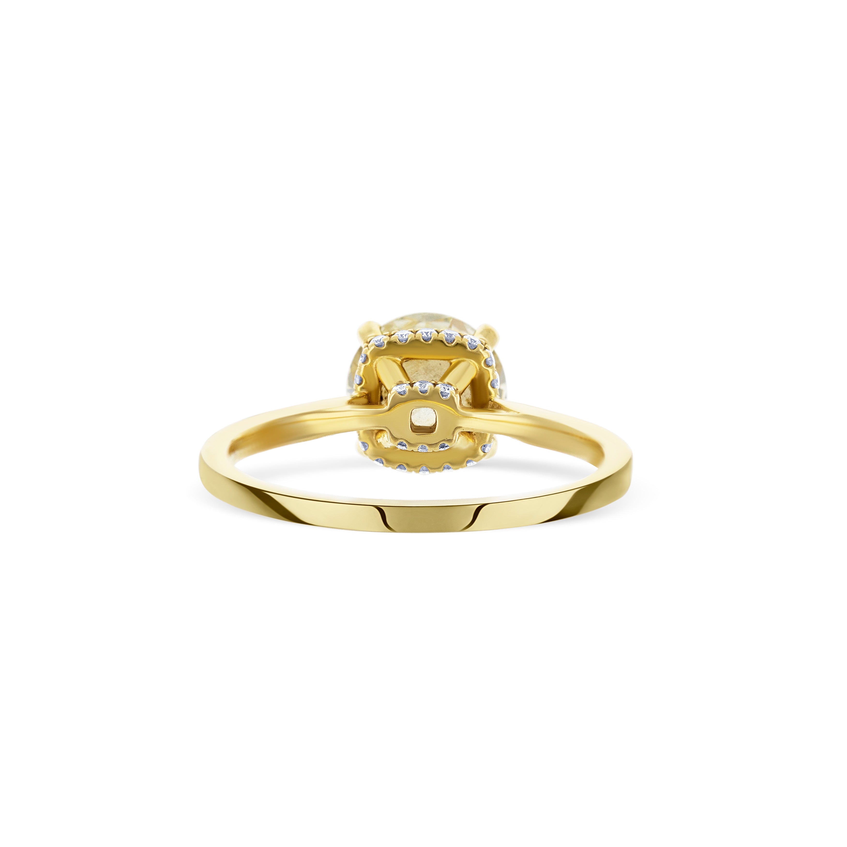 18K Yellow Gold Round Cut Diamond Engagement Ring with Diamond Basket Accent