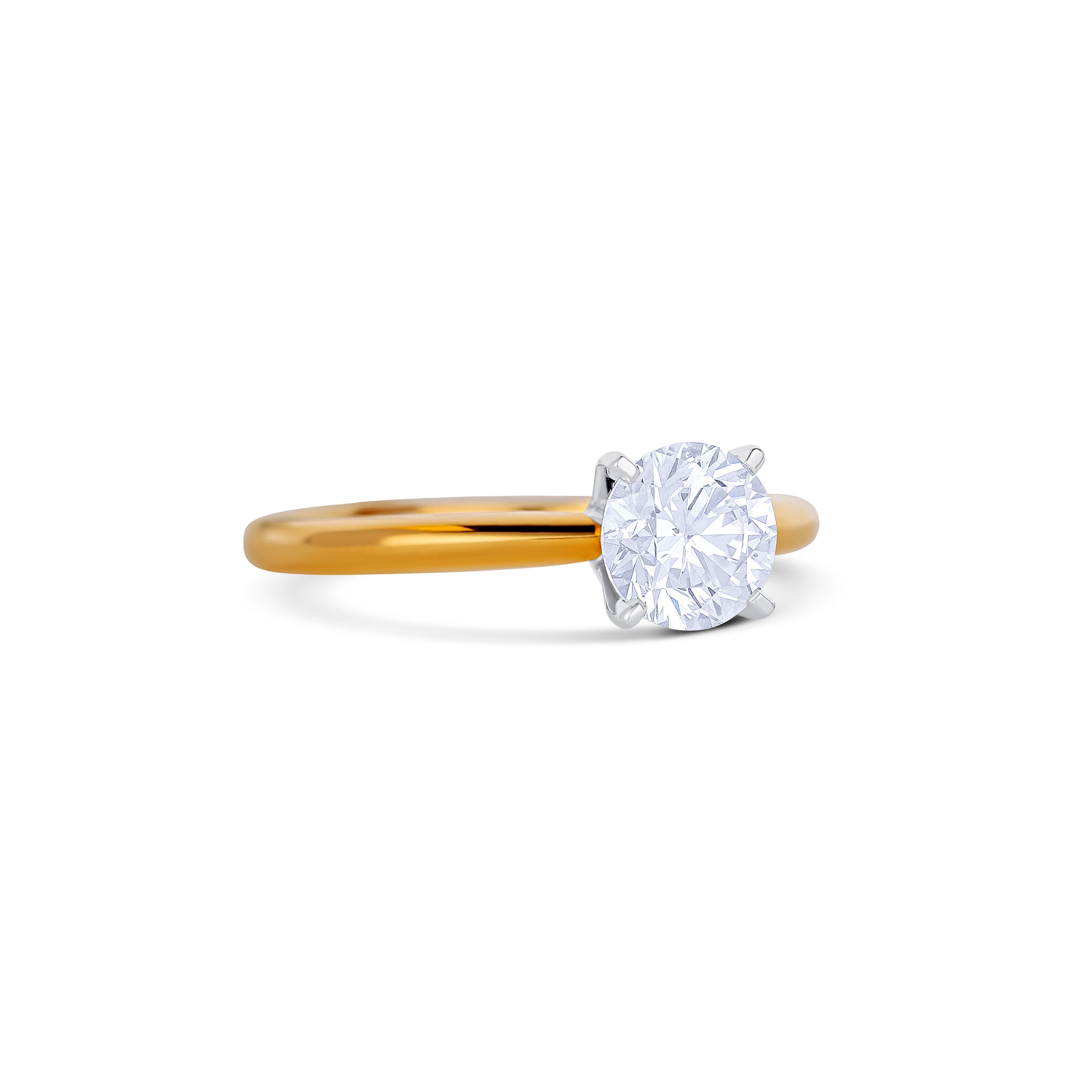 18K Yellow Gold Round Cut Diamond Lab Grown Engagement Ring