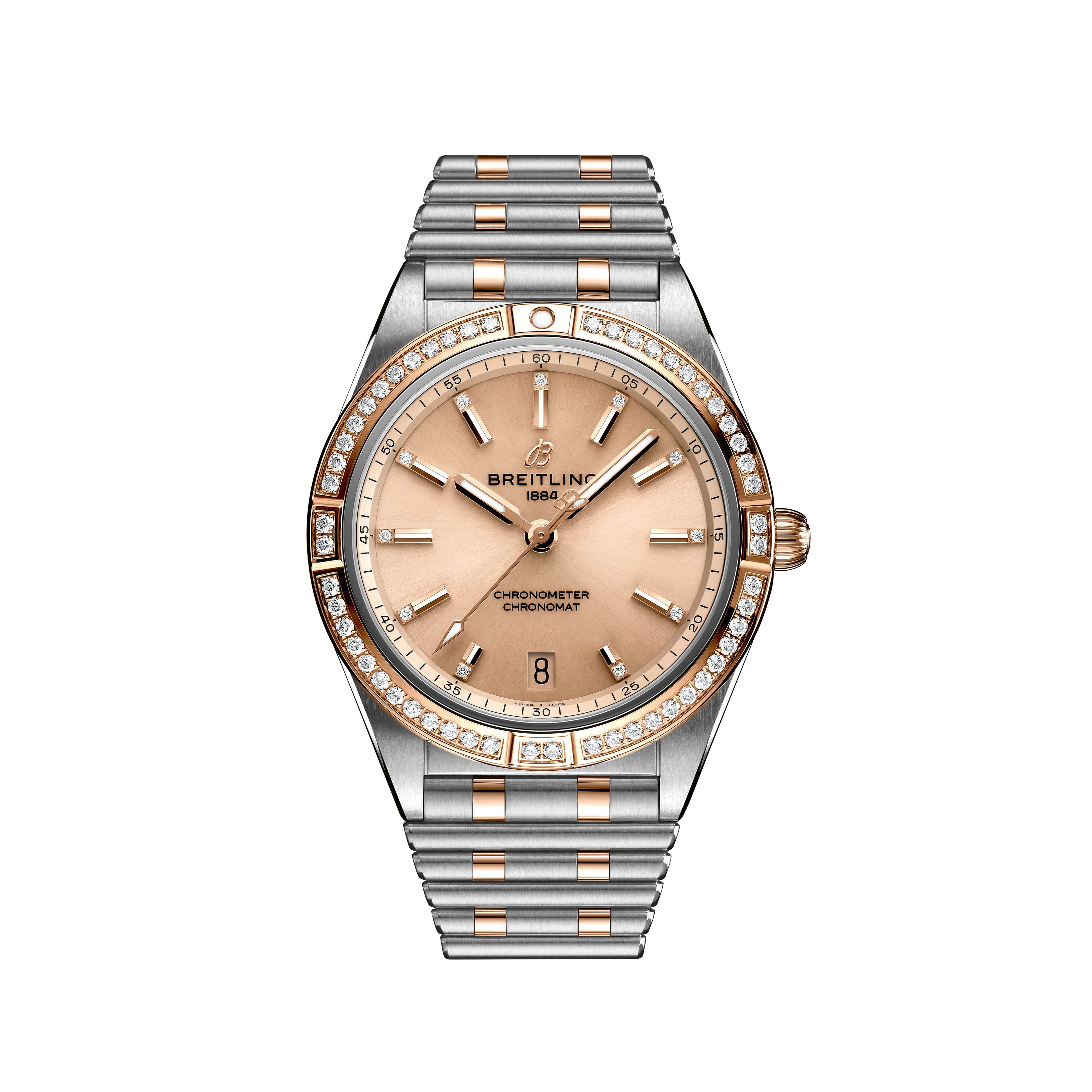 Stylish yet elegant, the modern-retro inspired Chronomat Automatic 36 is the versatile sporty and chic watch for any occasion. It is available in an array of metal cases, from cool stainless steel, to goes-with-everything bicolor, or even luxurious 18k red gold. Women craving extra sparkle will also be able to opt for diamond-set bezels, indices, and colorful dials. Featuring Breitling’s iconic and comfortable “Rouleaux” bracelet with a butterfly clasp, the Chronomat Automatic 36 is powered by the Breitling Caliber 10, a COSC-certified chronometer.