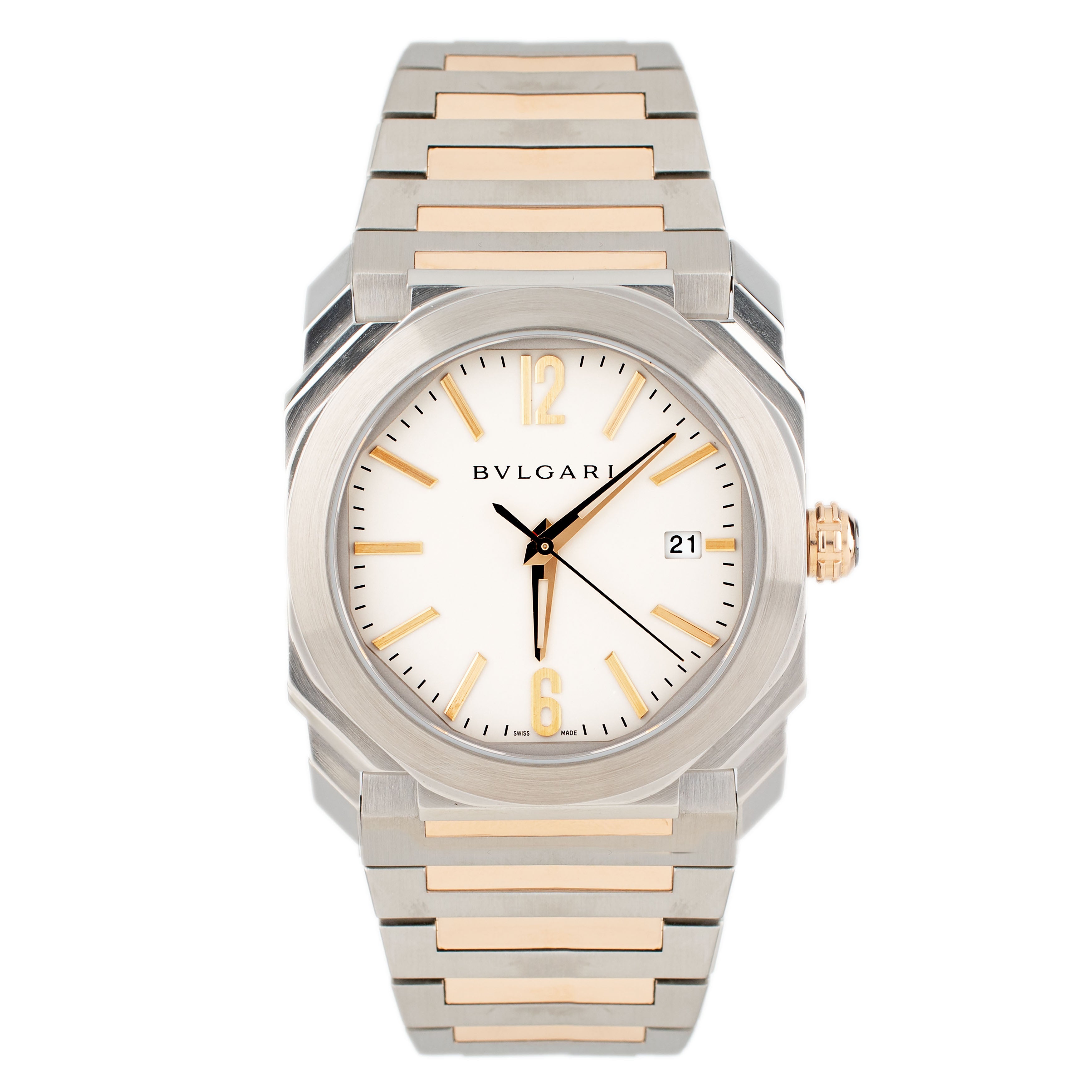 Bulgari Octo Solotempo Stainless Steel & Rose Gold White Dial 38mm 102118 Full Set